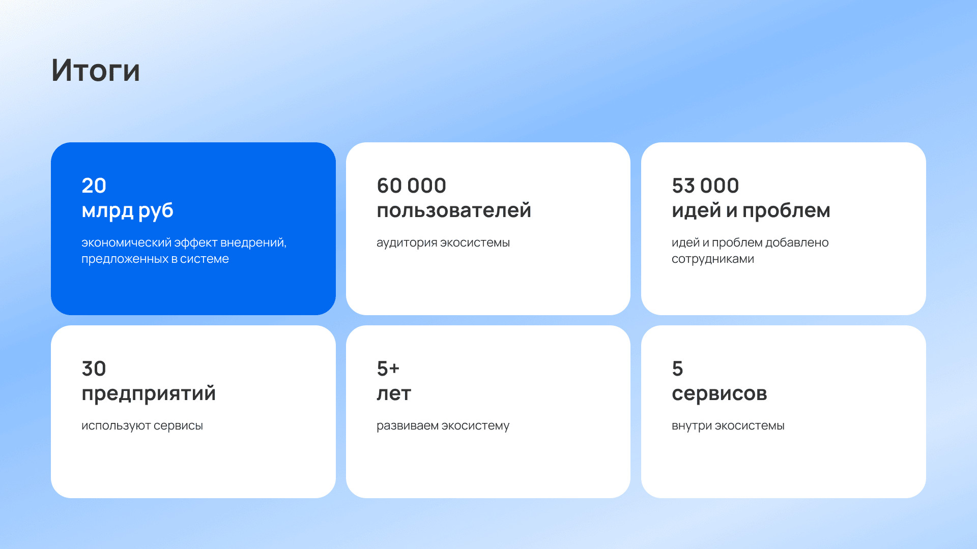В сервисах можно подавать идеи улучшений, сообщать о проблемах, проводить согласования, контролировать внедрение и подсчитывать экономический эффект мероприятий.