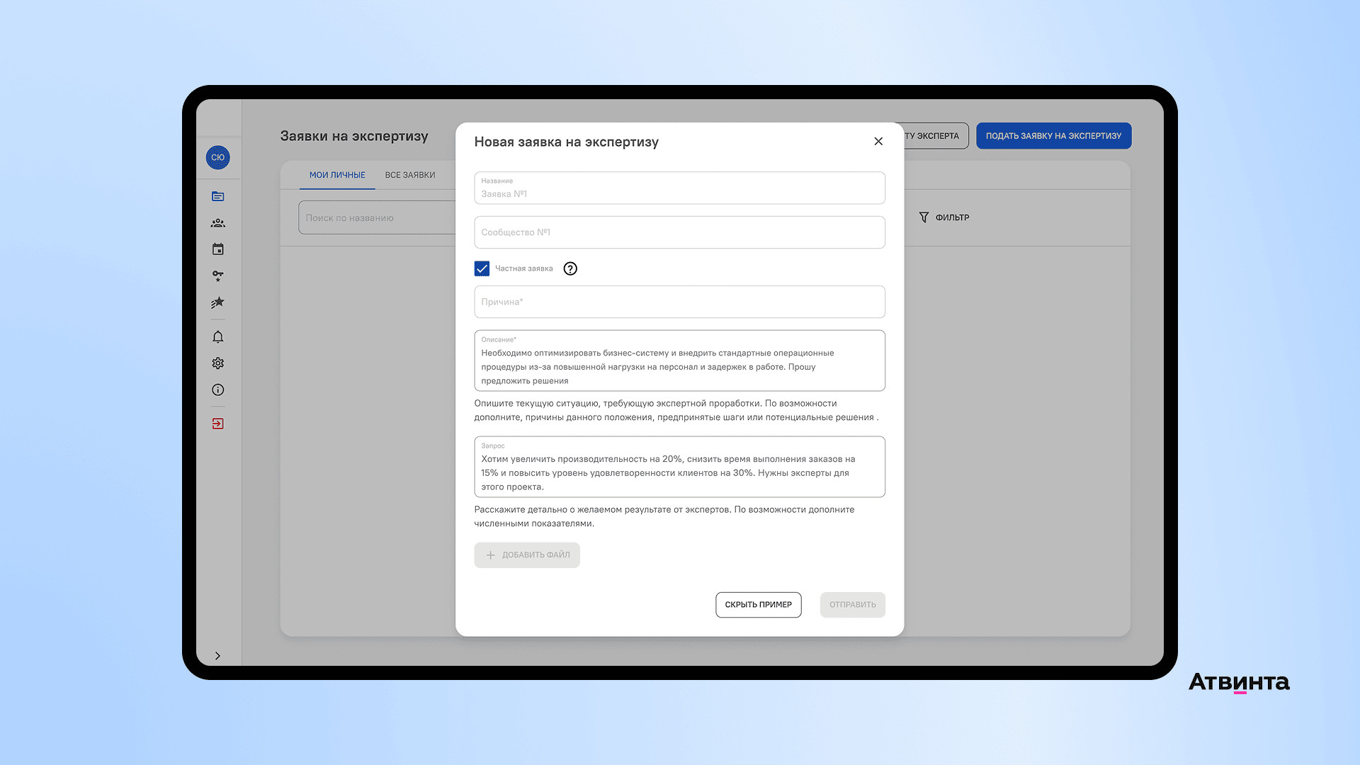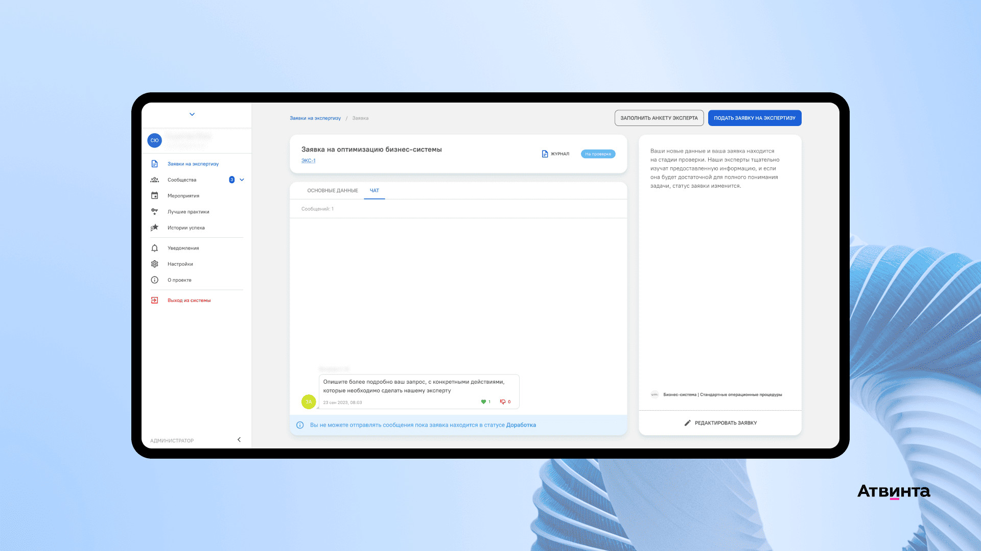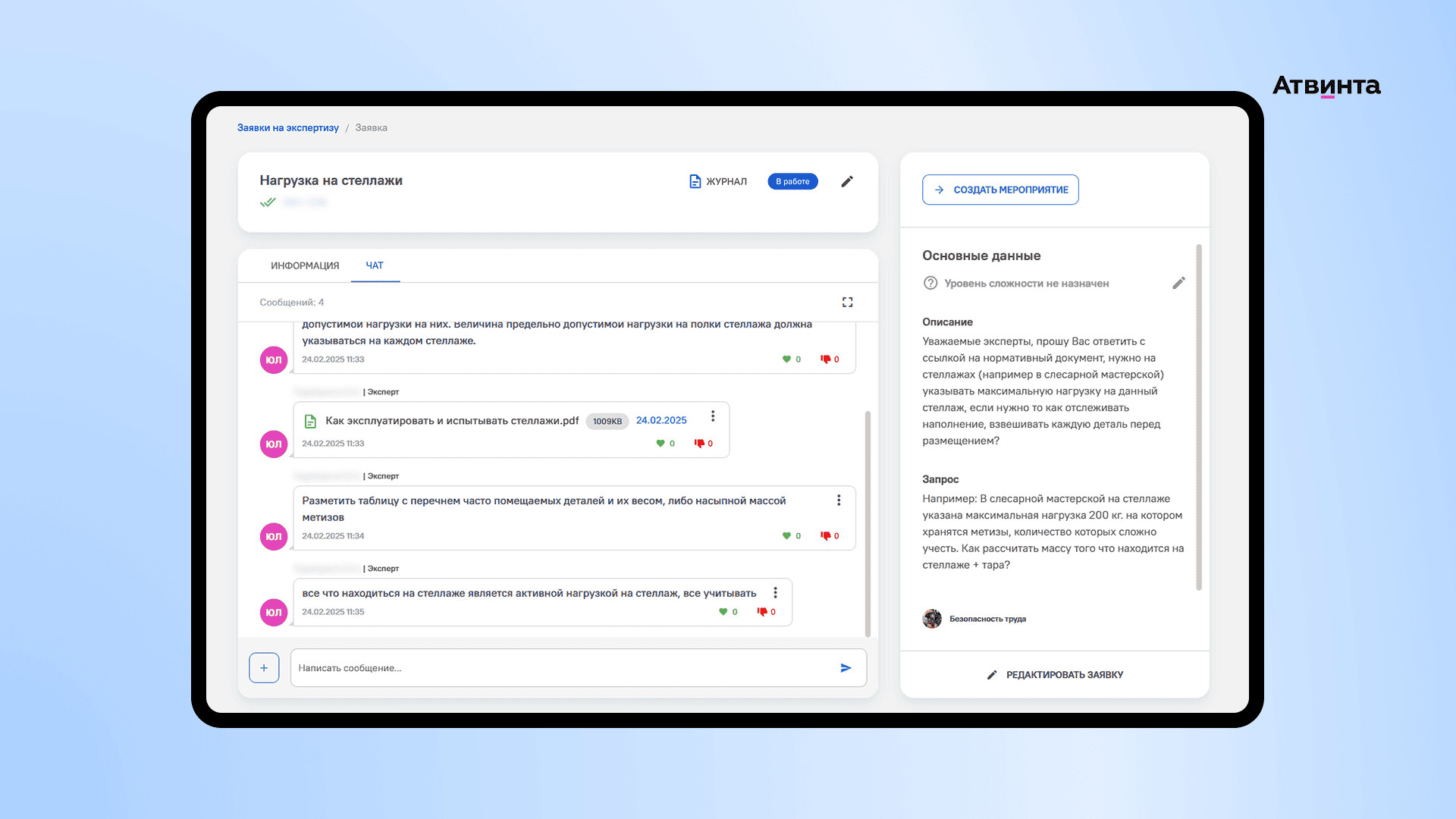В сервисе любой сотрудник компании может запросить консультацию эксперта для решения рабочего вопроса. Мы добавили блок функций, через который специалисты заказывают экспертизу и коммуницируют с экспертом.