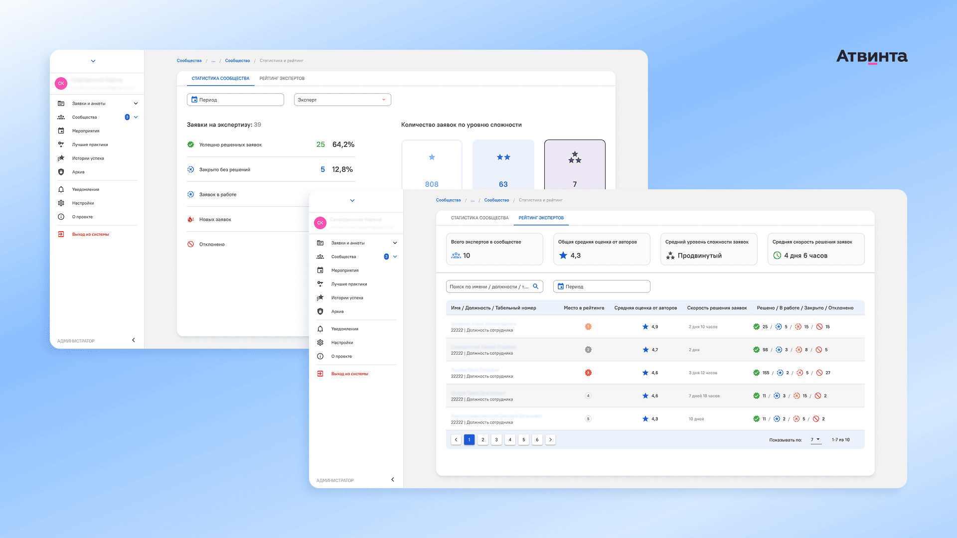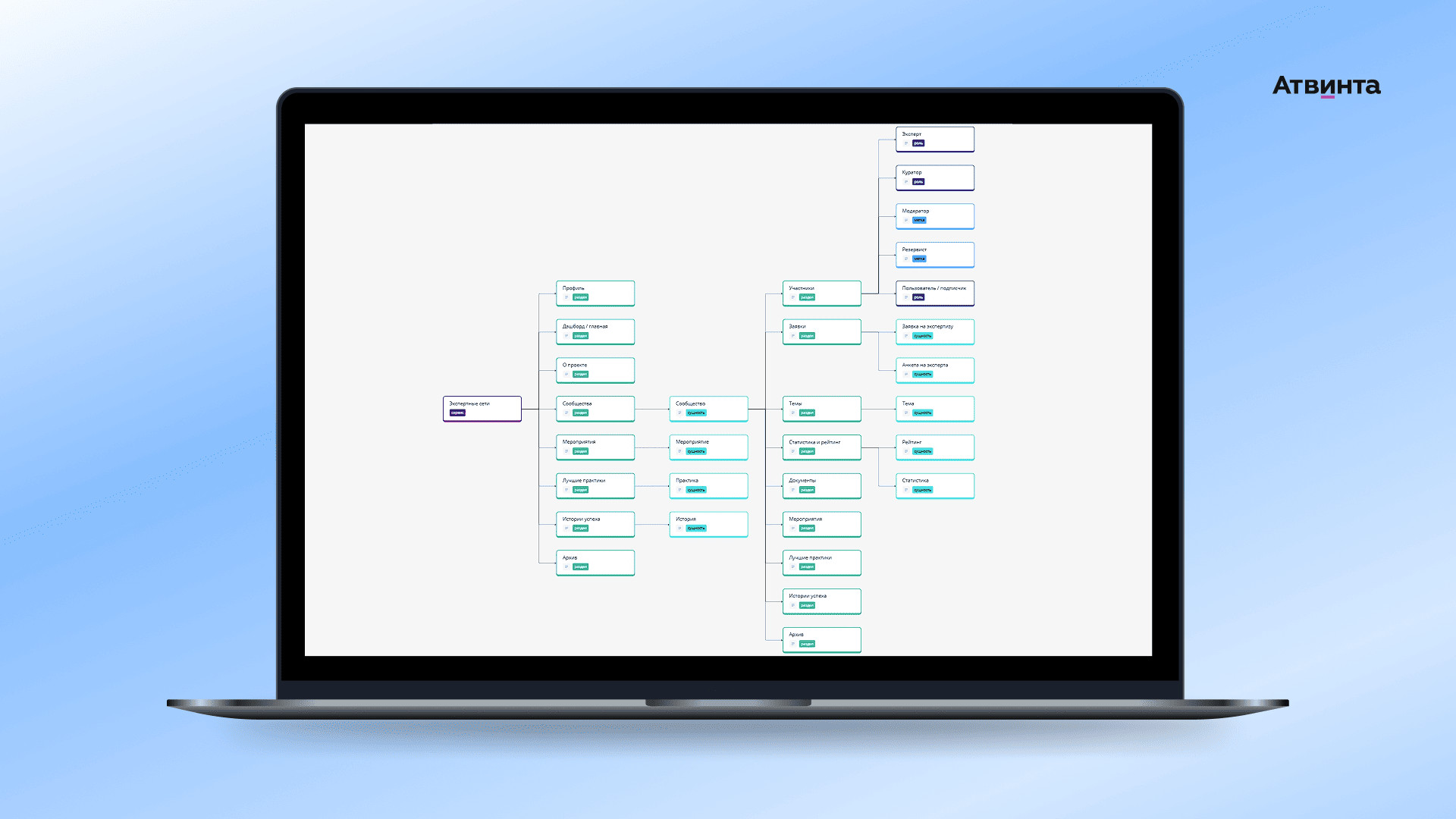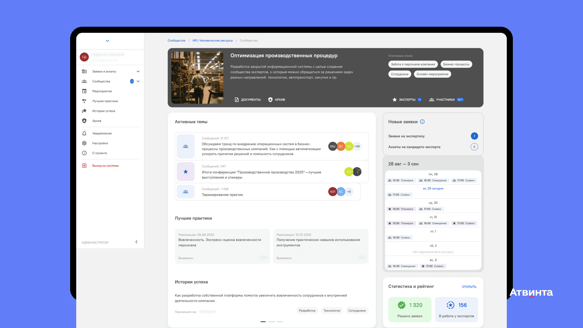 Мы устранили барьер между сотрудниками. Например, теперь технолог из Сибири может получить рекомендации директора по производству из Москвы Другой важный блок продукта — функционал профессиональной соцсети, которая нужна для обмена опытом, обсуждения трендов и совместных брейнштормов. Сотрудники могут объединяться в сообщества по темам, например, производство, ремонт, управление или охрана труда. Чтобы мотивировать пользователей активничать и помогать коллегам, ввели элементы геймификации: лидерборды, баллы и рейтинги. Они действуют как для сообществ, так и для экспертов. Продукт написан на PHP и фреймворках Vue и Laravel. Интерфейс выполнен в едином стиле с другими продуктами и позволяет бесшовно переключаться между ними по одному клику без дополнительной авторизации. Мы работаем с клиентом уже пять лет и отлично понимаем специфику бизнес-процессов в производстве. На этапе брифования клиент поделился видением структуры сервиса и ключевыми требованиями к функционалу, в том числе: Наш отдел аналитики собрал логику сервиса, связал между собой его разделы и составил пути пользователей по ролям. В системе 5 ключевых ролей: В сервисе любой сотрудник компании может запросить консультацию эксперта для решения рабочего вопроса. Мы добавили блок функций, через который специалисты заказывают экспертизу и коммуницируют с экспертом. Чтобы система работала, сначала нужно сформировать пул экспертов, которые будут давать консультации. Для этого мы внедрили систему анкетирования и отбора. Сначала будущий эксперт заполняет в системе анкету, где есть поля с личными данными и подтверждением экспертности — подробное описание опыта, компетенций и навыков. Чтобы облегчить процесс заполнения, добавили примеры и инструкции. Далее анкета попадает к куратору — это отдельная роль в системе для сотрудников, которые отвечают за отбор экспертов и администрирование Экспертной сети. Просматривая анкеты, куратор может добавить дополнительные вопросы, чтобы заранее уточнить детали и подготовить план собеседования. После проверки анкеты куратор назначает собеседование. Если кандидат соответствует требованиям, ему присваивается роль эксперта в системе — и он получает доступ к работе с заявками. Так, наш сервис помогает быстро просматривать анкеты и расширять пул экспертов. Форма подачи заявки на консультацию вынесена в правый верхний угол — кнопка всегда находится перед глазами, чтобы сотрудники могли быстро отправлять запросы. В заявке нужно описать вопрос и указать ожидаемый результат. Заявка отображается в общем реестре и выбранном сообществе. Для удобства предусмотрели систему фильтров, которая позволяет быстро находить нужные запросы по названию, статусу, уровню сложности или назначенному эксперту. С базой заявок работает куратор, который назначает эксперта на решение запроса. Если на эксперта поставили заявку — он получит уведомление в системе и начнет работу на отдельной странице заявки. Например, работнику нужна помощь в поиске стандартов для закупки мебели в новый офис. Эксперт присылает варианты декора и где его можно приобрести. Пользователь берет полученную информацию в работу, и заявка закрывается. Эксперты, пользователи и кураторы могут общаться в чате — у каждой заявки есть окно для обсуждения деталей. После консульта