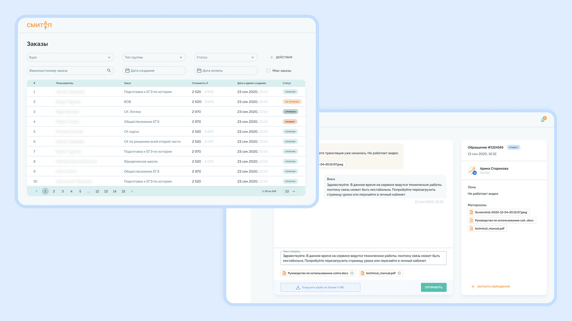 В «Технопроф Академии» управление контентом еще более формализовано. Методисты создают учебные модули, соответствующие отраслевым стандартам. Их кабинет включает: Ученику нужно предоставить простой и понятный контент. В СМИТАП каждый урок содержит видеоролик, текстовый конспект и домашнее задание. Студенту не нужно искать материалы в разных местах — все встроено в платформу. Если курс обновляется, ученик сразу видит актуальные данные и может при необходимости повторить материал. В «Технопроф Академии» сотрудники получают доступ только к тем материалам, которые им нужны: инструкции, видеоуроки и обязательные модули. Это упрощает обучение и делает его более целевым. В офлайн-формате преподаватель видит ученика и может оценить его вовлеченность и усталость. В цифровой среде эти сигналы скрыты и единственный способ понять, как проходит обучение — это изучить статистику. Удобные дашборды, автоматическая аналитика и отчеты помогают вовремя увидеть проблемы, скорректировать программу и поддержать студента. В СМИТАП ученики готовятся к ЕГЭ, проходят курсы и сдают задания. Для них важно, чтобы все необходимое было под рукой. В личном кабинете есть дашборд с ключевыми разделами: В СМИТАП учится подростковая аудитория. Для них мы сделали дружелюбный и простой интерфейс. Добавили праздничные анимации и различные игровые механики. Это помогает повышать вовлеченность и удерживать внимание учеников. В «Технопроф Академии» учениками являются сотрудники компаний. Здесь дашборд проще: есть статусы курсов, индикаторы завершения, кнопка для получения сертификата и система уведомлений. Главное — не отвлекать студента и дать ему максимум пользы за минимум времени. Наставники в СМИТАП используют встроенную аналитику для оценки эффективности уроков. Они видят: Эти данные позволяют обновлять слабые места в программе, заменять или дополнять уроки и делать обучение результативнее. Кураторы следят за системой и управляют продажами. В СМИТАП куратор видит: Платформа СМИТАП адаптируется под изменения и запросы пользователей — регулярно запускаются курсы и появляются новые функции. Поэтому нужно, чтобы куратор мог быстро менять параметры, не выходя из системы. В «Технопроф Академии» также есть панель для кураторов, в которой они отслеживают заявки и прохождение курсов. Прочитайте статью о том, как еще можно использовать админпанель Гибкость — один из главных критериев современной LMS. Студенты занимаются в дороге, а также дома с телефона или планшета. Поэтому платформа должна быть доступной всегда и на любом устройстве. Мобильная версия платформы СМИТАП автоматически адаптирует все уроки под смартфон — без необходимости вручную настраивать отображение. Все ответы сохраняются по умолчанию, а обучение можно начать на одном устройстве и продолжить на другом. Индивидуальный подход повышает мотивацию, помогает учиться в своем темпе и не терять интерес. Образовательная платформа должна уметь подстраиваться под каждого пользователя, даже когда на ней учатся тысячи человек одновременно. На платформе СМИТАП обучение построено как персональный маршрут. Каждый ученик видит те уроки, которые актуальны для него на данном этапе. Методист в СМИТАП настраивает индивидуальные траектории в рамках редактора курсов. Интеграции в LMS позволяют 