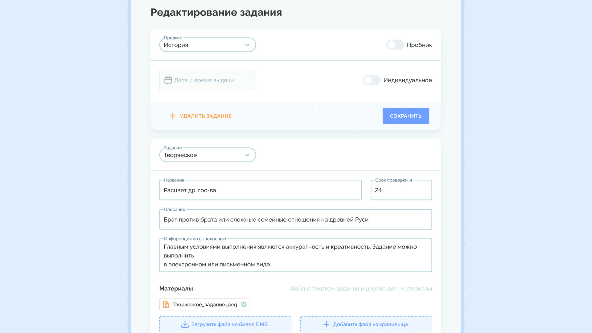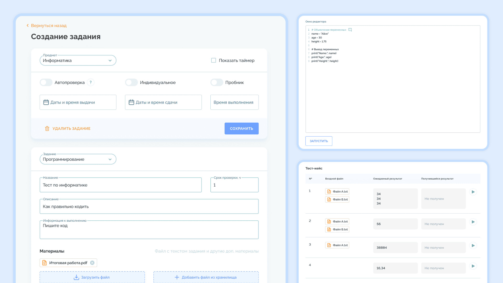 Методисту нужно работать быстро. Поэтому все собрано в одном окне и без лишних переходов.