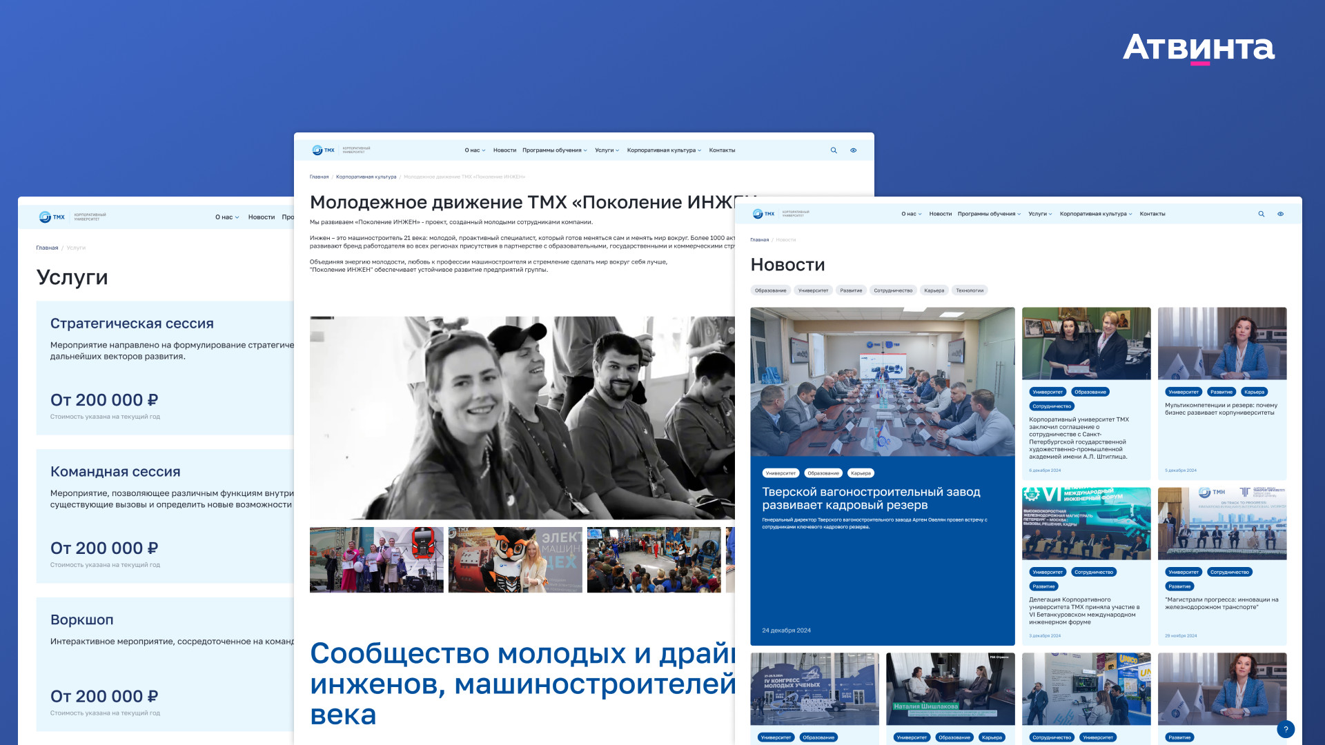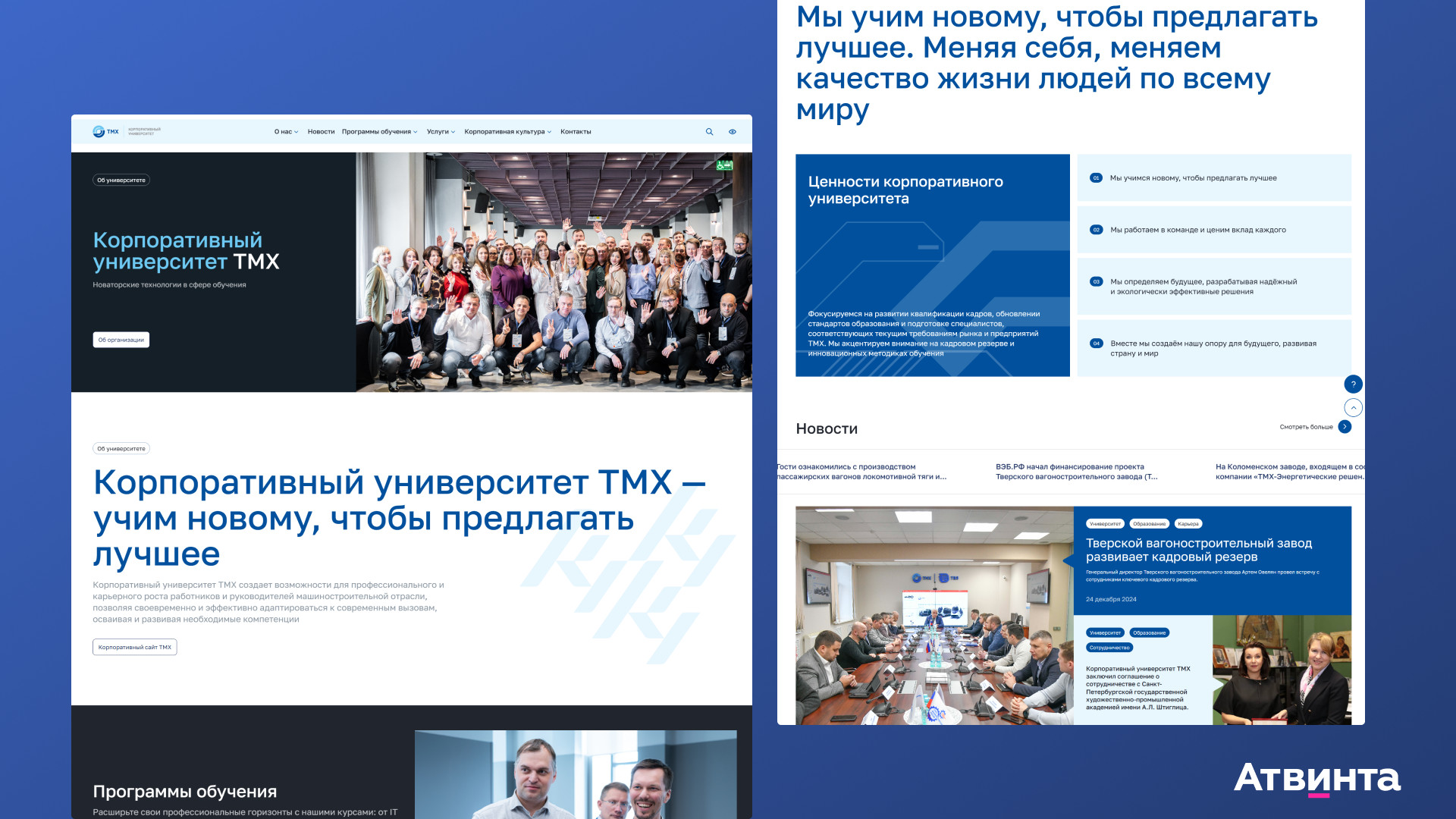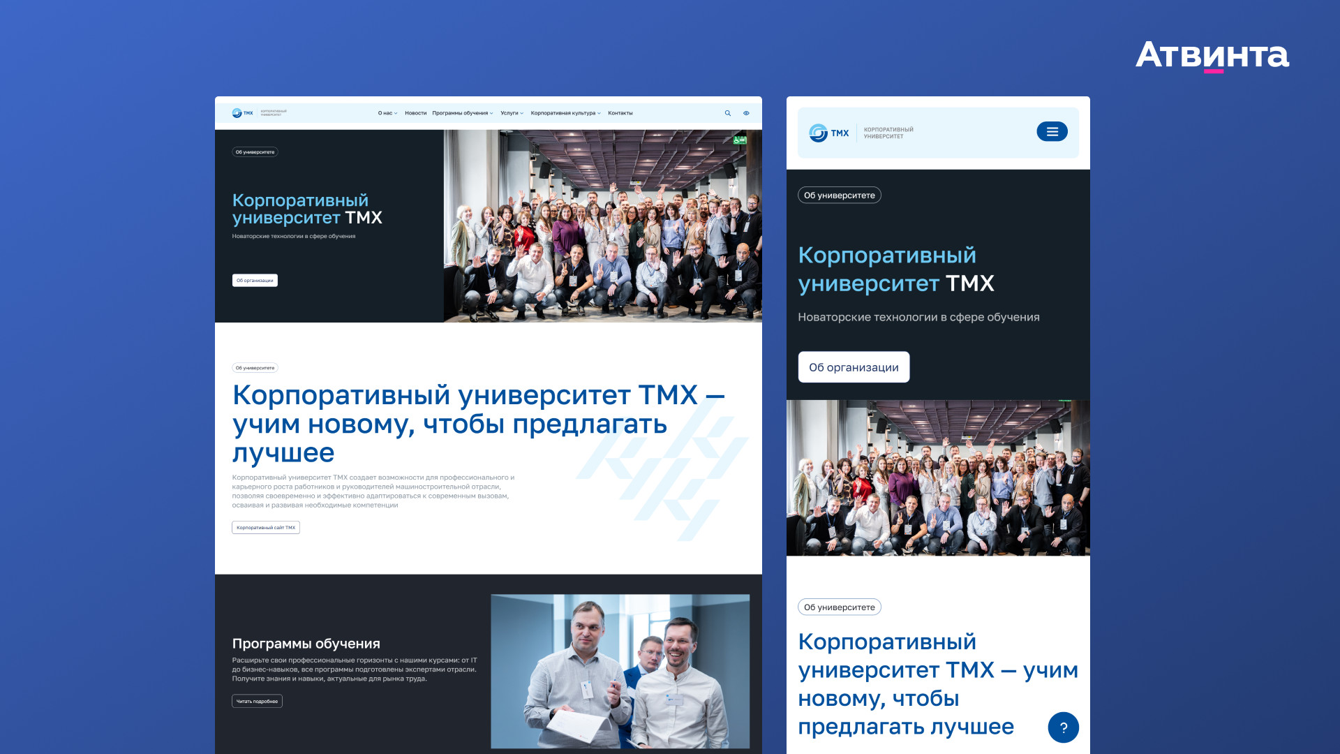 Клиент обратился к нам за разработкой сайта для Корпоративного университета ТМХ. В своих образовательных программах компания обучает и повышает квалификацию специалистов из отрасли тяжелого машиностроения.