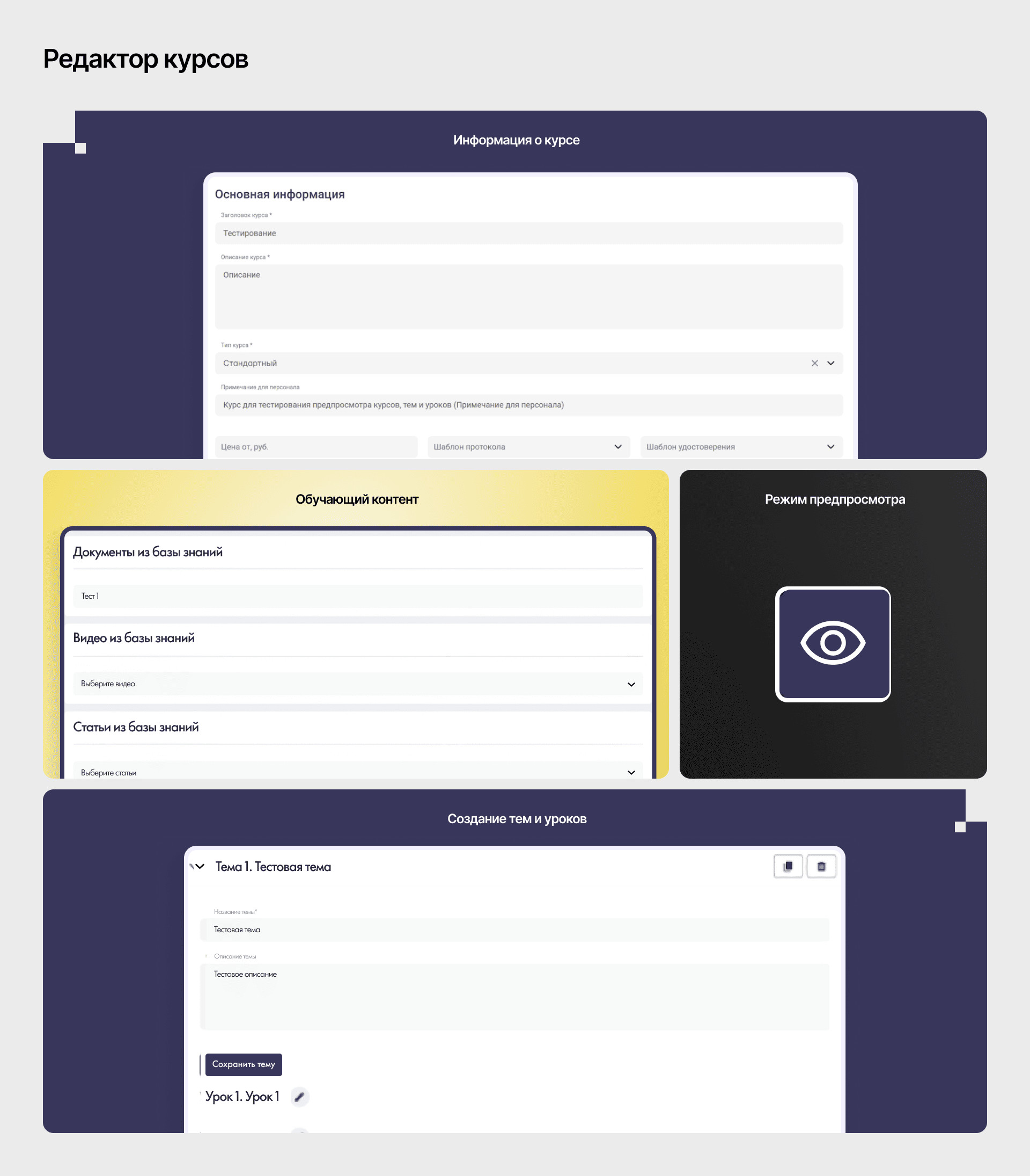 Объедините весь образовательный процесс в одном пространстве: курсы, материалы, тесты, домашние задания, сертификаты и статистику. Это упрощает администрирование, ускоряет запуск новых программ и делает обучение прозрачным.