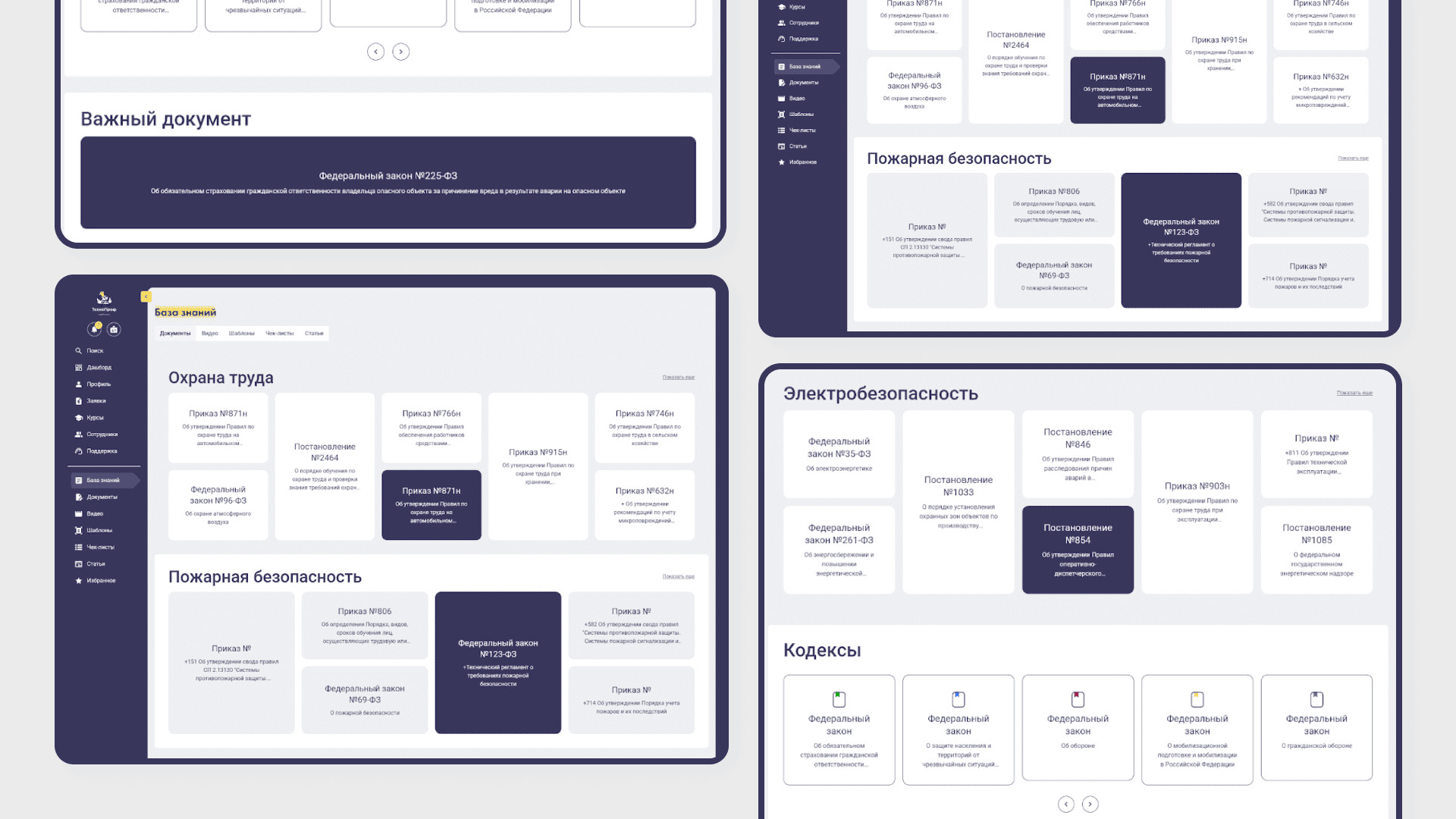 Второй наш кейс — создание экосистемы корпоративного обучения для сотрудников. Платформа разработана для ГК «ТехноПроф», которая оказывает образовательные услуги промышленным, строительным и проектным организациям. Внутри сервиса обучают по 240 направлениям. Мы создали, личные кабинеты для разных ролей и полный цикл автоматизации: от подачи заявки до формирования сертификатов.