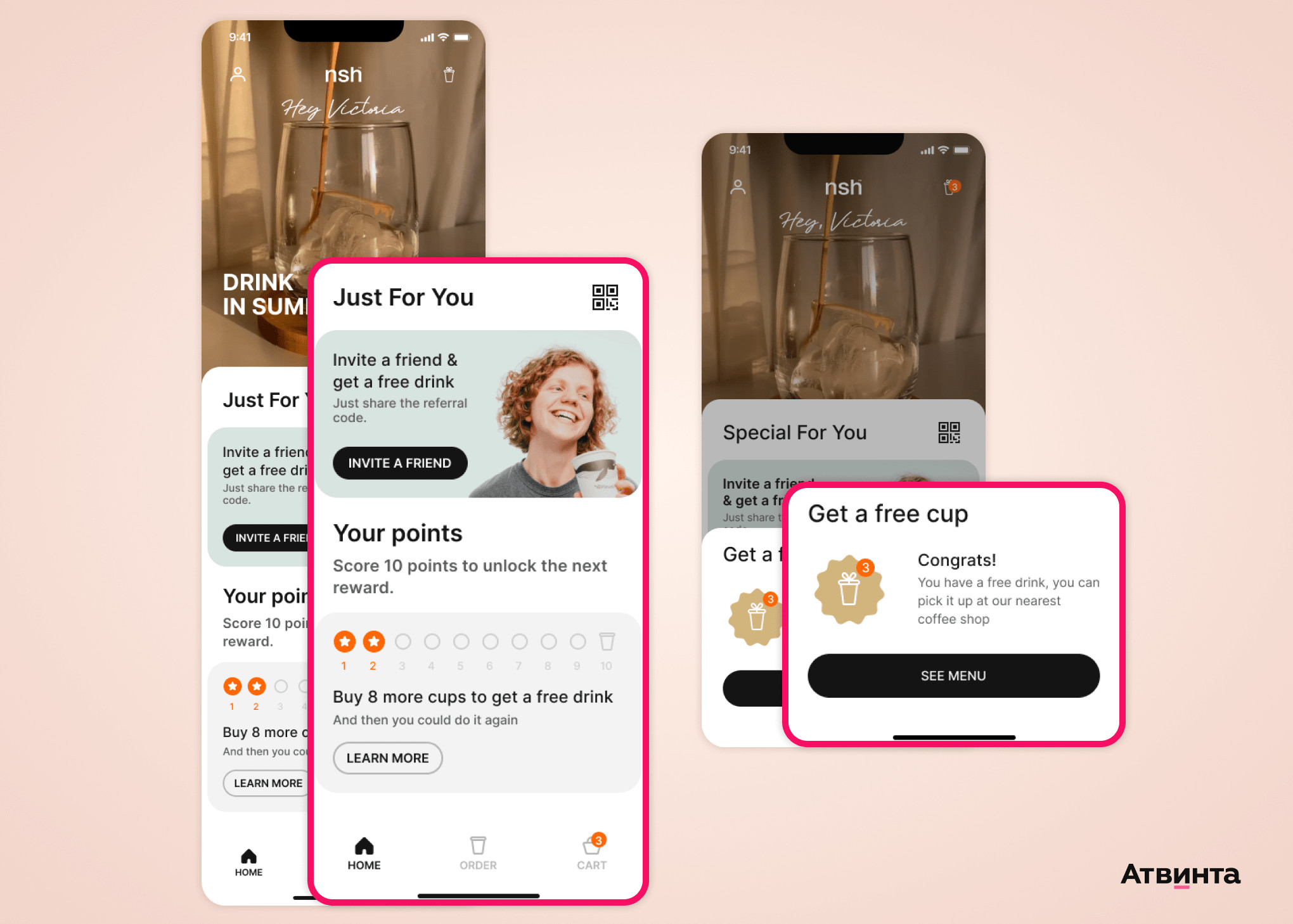 Задачи: Мы разработали минималистичную концепцию на основе референсов заказчика и фирменного стиля кофейни, включая дизайн стаканчиков, а также уже существующих идей по продвижению продукта. Интерфейс с узнаваемым фирменным стилем облегчает пользователям работу с приложением и поддерживает имидж бренда.