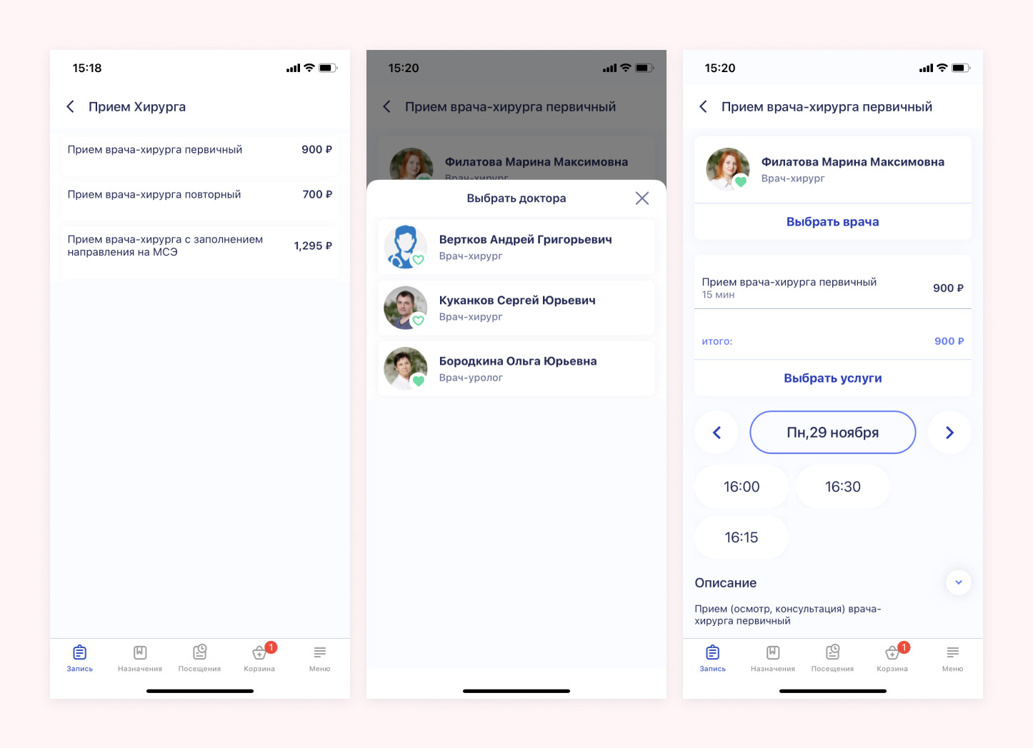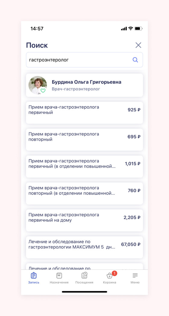 Приложение для записи к врачу и оплаты услуг клиники