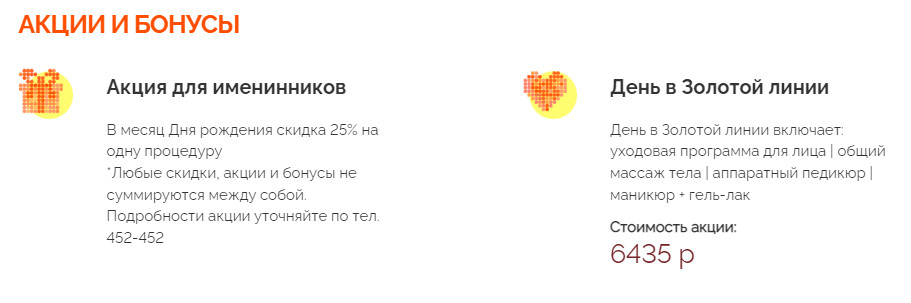 Сайт косметологического центра «Золотая линия»