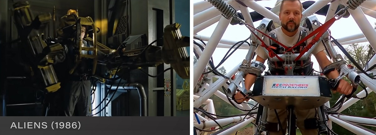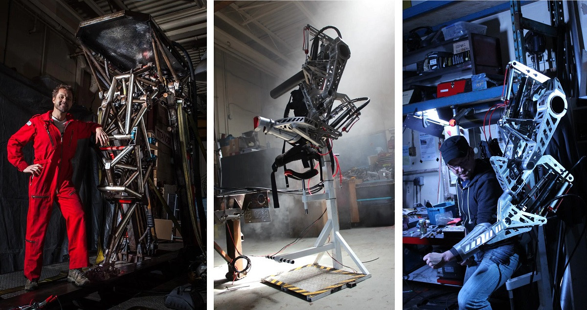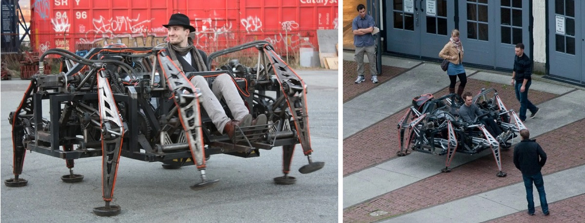 Эти механизмы можно также назвать экзоскелетами, поскольку могут увеличивать силу человека в 60-100 раз, правда в отличие от традиционных экзоскелетов они имеют гигантские размеры и вес. Последняя разработка, к примеру, обладает пятиметровыми габаритами, весит 4 тонны и вошла в Книгу рекордов Гиннесса, как самый большой четырех-опорный экзоскелет. Но анти-роботы не столько копируют скелет человека, сколько представляют собой транспортное средство — эдакий биомеханический динозавр или слон. Изобретатель планирует в будущем даже устраивать на них соревнования.