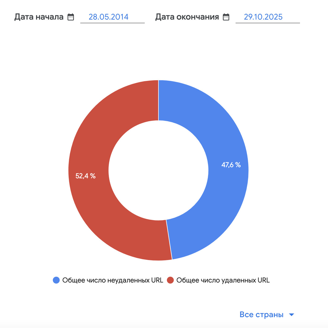 Google с 2014 года обработал запросы на деиндекс более 7 миллионов ссылок от пользователей из Евросоюза, по собственной статистике поисковика. При этом удалены были около 50% ссылок, то есть шансы на удовлетворение заявки — 50/50. По статистике Яндекса, за последние 5 лет отклонялись примерно 70% запросов, хотя в 2024-м году наметился положительный тренд на количество одобрений.