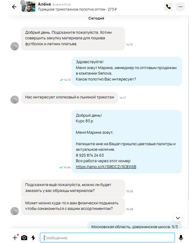 В переписках — оптовой интерес