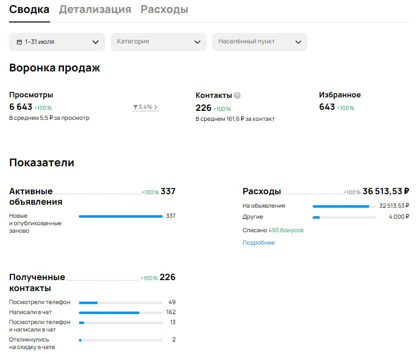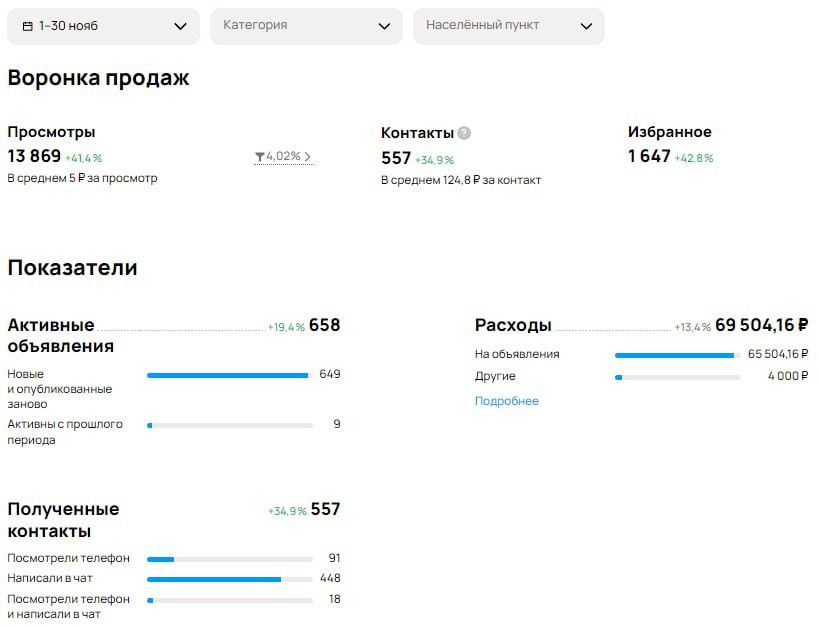 - 337 объявлений в первый месяц, 658 — к пятому
