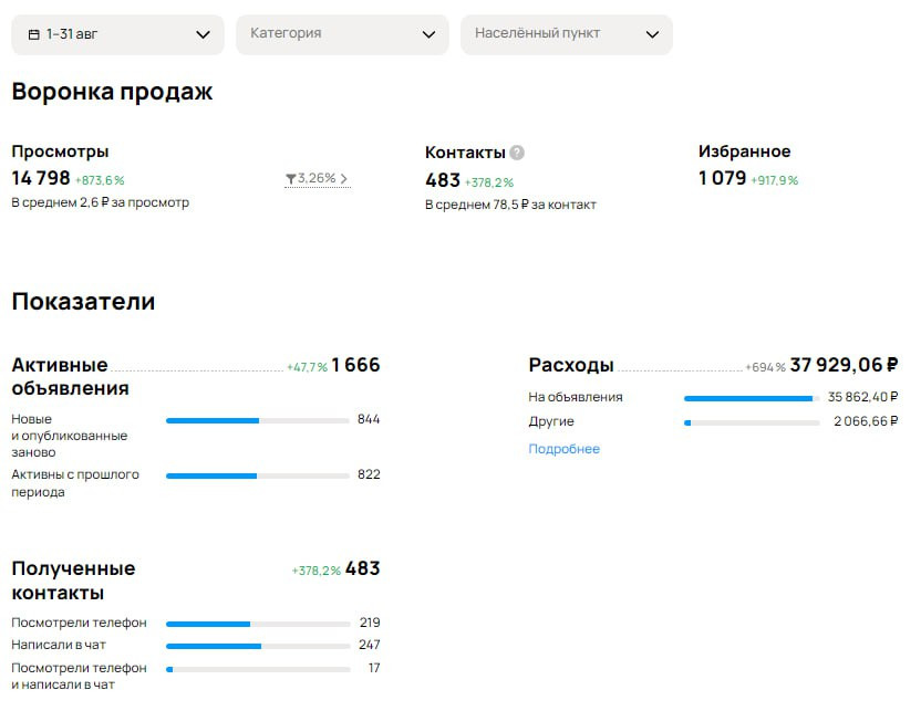 Результат первого месяца: Результат второго месяца: Пример работающего объявления: География: аналогичный регион Что происходило: Результаты: «Звонков мало, клиенты не покупают» — но статистика показала, что 70% чатов оставались без ответа первые два часа." Отличные результаты по контактам, но нет продаж: Статистика рабочих объявлений: У обоих клиентов цифры по трафику и лидам выглядели схоже: На этом сходства заканчивались. Клиент А отвечал за 5 минут, Клиент Б — через 3–5 часов. В итоге конверсия в сделку у первого составила около 16%, а у второго — меньше 1%.