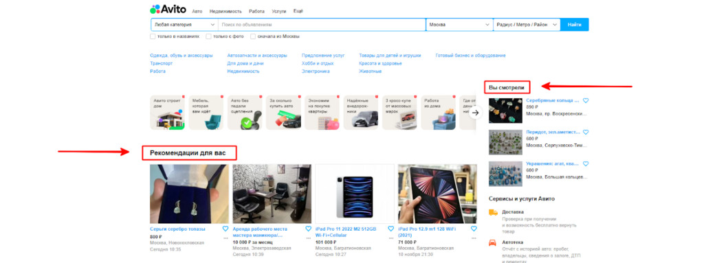 Любой пользователь площадки видит объявления не в порядке их выкладки. Карточки товаров появляются в выдаче по целевому запросу пользователя как будто случайным образом. Это результат работы системы Авито, которая анализирует запросы и просмотренные объявления, а затем предлагает подходящие товары, которые могут заинтересовать человека. Обычно они похожи по тематике и геолокации на то, что пользователь уже искал. Именно поэтому продавцам стоит продвигать свои объявления и получать за счет продвижения максимальный охват и как можно большее количество потенциальных покупателей. До того как вы начнете пользоваться бесплатными и платными методами продвижения, которые мы описываем здесь, нужно тщательно продумать стратегию. Перечислим факторы, которые следует учесть на начальном этапе. Определяя данный показатель, нужно учитывать факторы, влияющие на продажи: количество подобных товаров на рынке, сезонность спроса. Так, зимой нет смысла ожидать роста заявок на надувные матрасы и бассейны, при этом поздней весной и летом они будут продаваться намного лучше. Вы можете увеличить вероятность продажи даже в низкий сезон, если сделаете свое предложение выгоднее, чем у конкурентов. Например, вместе с велосипедом можно предлагать в качестве подарка небольшой набор инструментов или одно бесплатное обслуживание. В зависимости от текущей вероятности продажи можно корректировать сроки платного продвижения. Например, в низкий период — запустить кампанию на неделю, а в высокий — на 1–2 дня. Так вы сможете распорядиться рекламным бюджетом рациональнее. Перед началом продвижения нужно представлять, сколько продавцов действует в целевой нише. Большое количество аналогичных предложений обостряет конкуренцию и усложняет продажи. Яркий пример, где большое количество продавцов сильно нагревает рынок и влияет на цену, — аренда недвижимости. Если интересующая ниша почти пуста (2–4 продавца), то стоит воспользоваться услугой увеличения просмотров в 2 или 5 раз. При высокой конкуренции лучше увеличивать показы в 10 и более раз. Не нужно необдуманно подключать все подряд услуги, важно решить, какие возможности площадки позволят получить нужное количество продаж. Например, для увеличения числа разовых сделок и достижения определенного количества постоянных звонков понадобятся разные сроки действия услуг. Стратегию продвижения нужно выбирать в зависимости от того, какова вероятность продажи. Высокая вероятность продажи. Если в вашей нише высокая конкуренция, а объем продаж маленький, подойдет покупка услуги по увеличению показов в 10 раз на 7 дней, а при среднем объеме лучше выбирать вариант увеличения в 5 раз всего на 1 день. Если конкуренция низкая, а продаж много, можно увеличить охват в 2–5 раз на 7 суток, а низкие объемы продаж можно поправить, увеличив показы в 2 раза на 1 сутки. Низкая вероятность продажи. Если конкуренция высокая, лучше на 7 суток увеличить охваты в 5–10 раз. При низкой конкуренции хватит увеличения охватов в 2 раза всего на сутки. Всегда нужно оценивать отдачу от принятых мер. Для этого можно зайти в следующие разделы на Авито. «Мои объявления». Напротив каждого предложения (товара или услуги) в списке отображается количество просмотров и пользователей, которые добавили карточку в «Избранное». Здесь же показывается ста