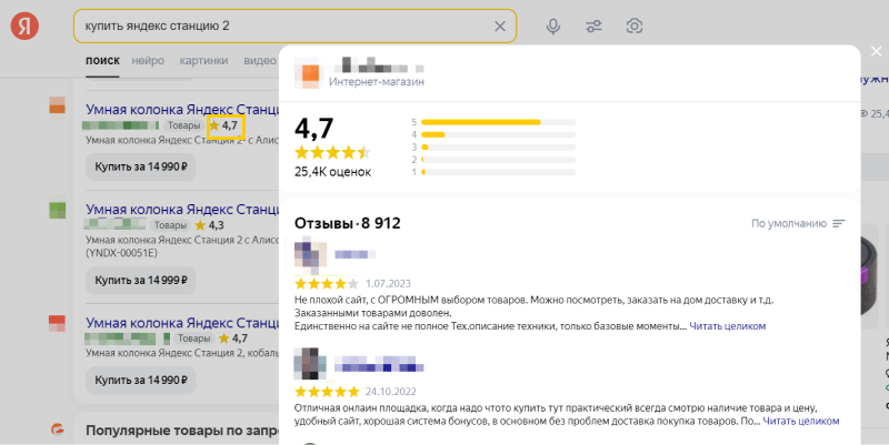 - цены в магазинах — специальный блок в поиске со списком подходящих товаров и их стоимостью;