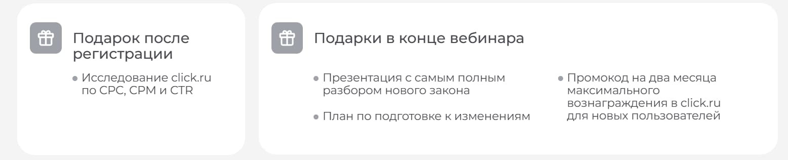 Перед тем как прийти к текущей структуре страниц вебинаров, мы протестировали десятки вариантов: с разной подачей, визуальными элементами и персонажами. Так, в одном из последних вебинаров мы отдельно прорабатывали логику визуальных акцентов. Как я обычно оцениваю макет? Расфокусирую взгляд и отслеживаю, куда уходит внимание в первую очередь. На примере легко считать структуру: сначала считывается заголовок, потом стрелка, затем кнопка регистрации. Взгляд почти не задерживается на второстепенных элементах вроде полукруга, но точно попадает на дату и пометку «Бесплатный вебинар». A/B-тесты подтверждают: то, как движется внимание пользователя по странице, напрямую влияет на конверсию. Дополнительная ценность после регистрации Один из работающих приемов — дать участнику ценность уже на этапе регистрации. Например, сразу после заявки на конференцию мы открываем доступ к отраслевым исследованиям click.ru. Это мотивирует оставить контакты и повышает конверсию. Другой способ — заранее сообщить о розыгрышах в конце вебинара. Даже небольшие призы (книги по маркетингу, пауэрбанки) работают: помогают удерживать внимание и повышают доходимость до конца трансляции. Страница «Спасибо» и чат-боты После регистрации пользователи оказываются на странице «Спасибо». Мы собрали статистику: 40–50% из них дальше переходят в чат-бот, чтобы получить напоминания о вебинаре и сразу забрать полезные материалы. Это не только повышает доходимость до мероприятия, но и позволяет постепенно формировать собственную базу подписчиков внутри бота, расширять охват для будущих коммуникаций. На вебинары мы регулярно набираем значительную часть аудитории именно из чат-бота и email-рассылок. Это показывает, насколько эффективно работает модель с несколькими параллельными воронками. Каждую из них потом можно развивать отдельно: отправлять персонализированные предложения, прогревать аудиторию и повышать конверсию в продажи. Автозаполнение почты в форме регистрации Дополнительно помогает простая, но рабочая фишка — автозаполнение адреса электронной почты в форме регистрации. Если человек переходит по ссылке из письма, на лендинге его email автоматически подставляется в форму регистрации. Такая мелочь увеличивает количество регистраций в среднем на 18%. Прогрев контентом За пару дней до вебинара мы запускаем серию прогревочных писем с полезными статьями — не только с анонсами, но и материалами по теме. Это помогает повысить интерес и вовлеченность. Как показала практика, такая рассылка конвертирует лучше, чем просто письмо с анонсом. Использование видеолендингов Видеолендинг — одноэкранная страница, где слева размещено короткое видео (до минуты) с обращением спикера, а около него — заголовок и кнопка регистрации. Особенно хорошо такой подход работает ВКонтакте: пользователи этой соцсети привыкли к формату клипов и охотно смотрят короткие видеоприглашения. По нашим наблюдениям, конверсия таких страниц ВКонтакте примерно в 1,5 раза выше, чем у классических лендингов. Но есть нюанс: в email-рассылках и Telegram такой формат не очень эффективен — видеолендинги плохо конвертят. Разберем конкретные факторы, которые повышают конверсионность продуктовых лендингов. Закрепленная шапка с кнопкой По нашей практике, больше всего регистраций приносит не первый экран, а к