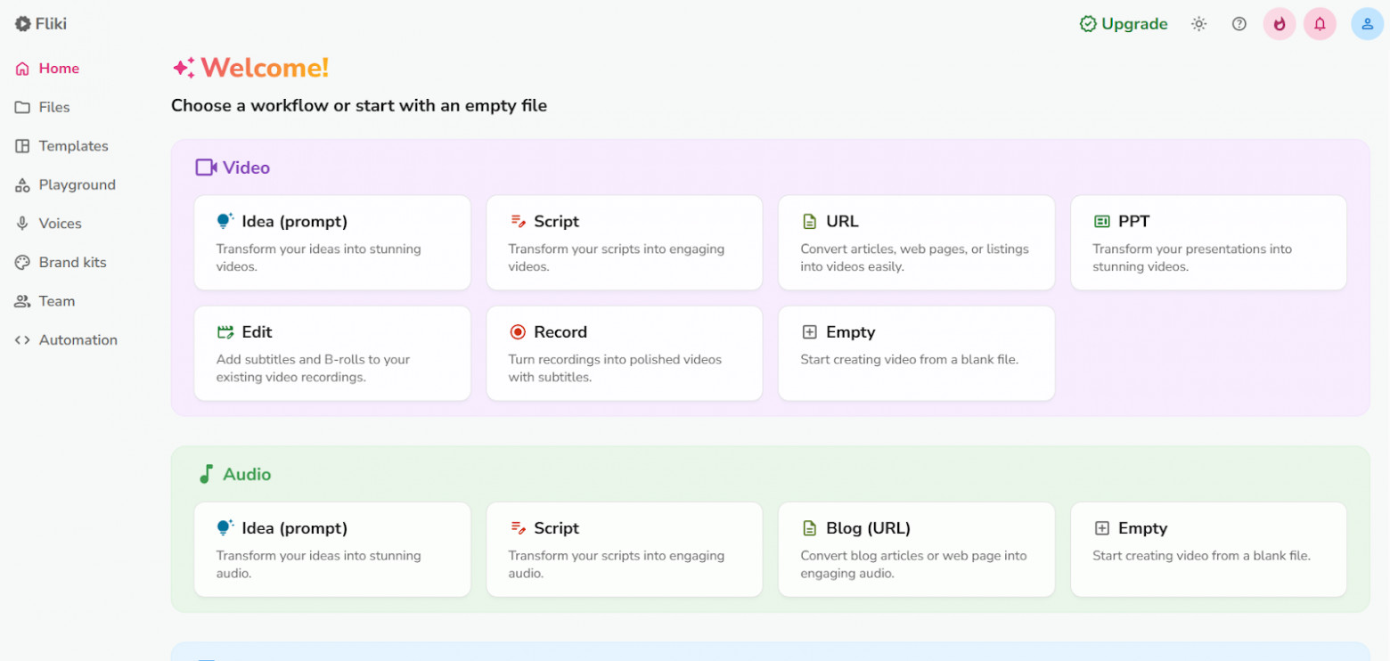 Fliki — нейросеть, которая помогает быстро создавать видеоролики из другого контента.