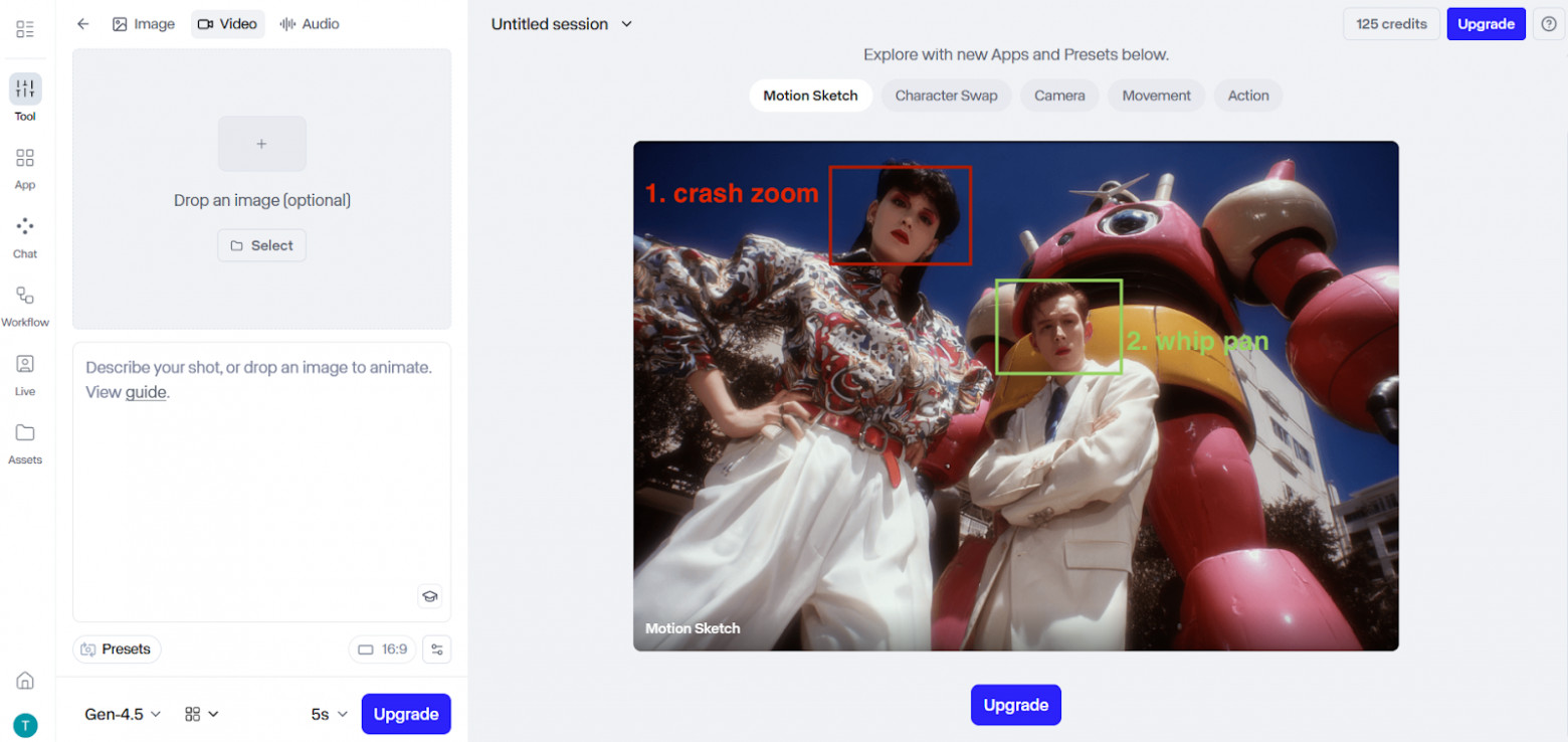 Runway — AI-платформа для работы с изображениями, видео, аудио. Можно создавать сложный визуал без навыков анимации и монтажа.