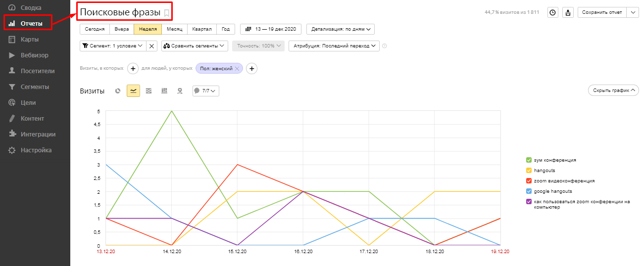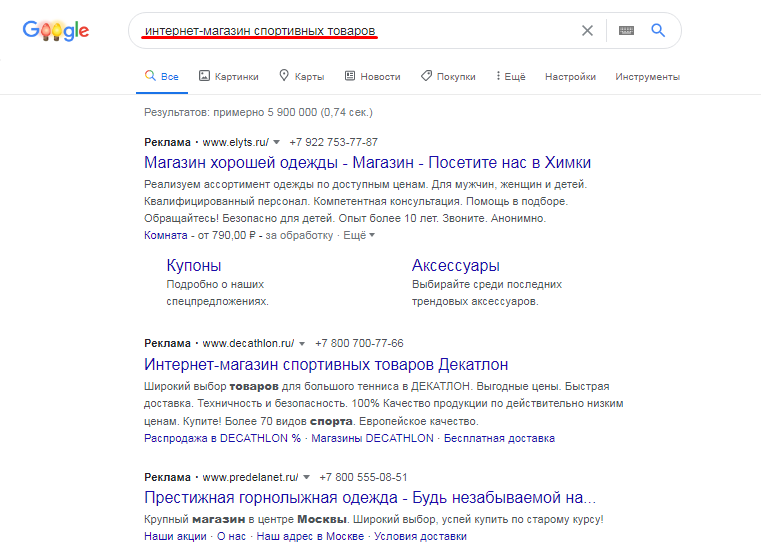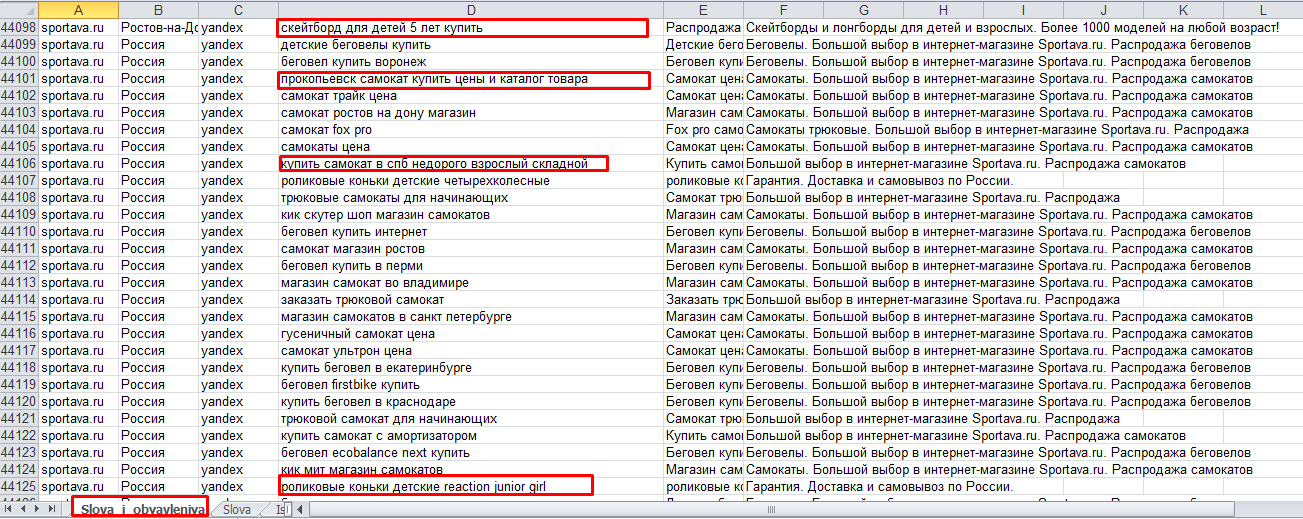 Проанализируем историю обращения пользователей к Алисе с мобильных устройств. Статистика показывает, что доля обращения по запросам к Алисе с мобильных устройств в ноябре 2020 года составляет 79% (34051117/43151189=79%). Еще больше о том, как оптимизировать статистику Вордстата и автоматизировать работу с ним, читайте в статье «Яндекс Wordstat: как применять в контекстной рекламе». Основные тенденции при использовании голосового поиска: Успешно адаптироваться к быстро растущему числу голосовых запросов помогут следующие меры. Учитывайте то, как люди формулируют свои мысли при использовании голосового поиска. Обычно они говорят 5-6 слов, используют глаголы, вопросительные союзы или привязываются к месту. Примените эту информацию для адаптации контекстной рекламы к голосовому поиску. Посмотрите, по каким произносимым фразам ваш сайт уже появляется в Яндексе или Google. Сделать это можно с помощью отчета «Поисковые запросы» Директа или Метрики в зависимости от того, что вы хотите изучить: только платный или платный и органический трафик. Если ваш сайт посещают достаточно активно, 30-дневного временного интервала вполне хватит, чтобы увидеть, насколько в нем представлен голосовой поиск. Для добавления соответствующих запросов в свою кампанию удобнее будет экспортировать отчет в формате Excel. Читайте также статью «Как настроить Яндекс.Метрику: полная инструкция». В Google Ads или Analytics вы можете открыть аналогичные отчеты. В них также существует функция экспорта. Читайте также статью «Как настроить Google Analytics: полная инструкция». В Excel в полученный файл удобно будет добавить столбец «Число слов в запросе» — используйте для этого формулу: =ЕСЛИ(ЕПУСТО(A2);0;ДЛСТР(СЖПРОБЕЛЫ(A2))-ДЛСТР(ПОДСТАВИТЬ(A2;" ";""))+1) Отфильтруйте таблицу по этой строке, оставив только запросы с количеством слов, превышающих 5. Как самостоятельные ключевые фразы в кампанию они вряд ли подойдут. Однако помогут гораздо лучше понять интересы и намерения вашей аудитории. Если вы еще не адаптировали свои контекстные кампании к голосовому поиску, вероятнее всего, это уже сделали ваши конкуренты. Посмотрите, какие ключевые слова используют в настройках кампаний ваши крупнейшие соперники. Сделать это бесплатно поможет инструмент «Слова и объявления конкурентов» от Click.ru. Покажем на примере интернет-магазина спортивных товаров, как собрать ключевики, по которым продвигаются конкуренты. 1. Определите конкурентов. Для этого введите в поисковую строку запрос «интернет-магазин спортивных товаров» и проанализируйте выдачу. 2. Соберите URL из поисковой выдачи. Вот они: Для более подробного анализа введите несколько тематических запросов и посмотрите, какие сайты будут выходить на первые позиции. 3. Зарегистрируйтесь в Click.ru и перейдите к инструменту. Для этого в главном меню выберите «Инструменты» — «Объявления» — «Слова и объявления конкурентов». 4. Укажите URL конкурентов. 5. Укажите, в каких поисковых системах собирать данные. 6. Скачайте отчет в формате XLSX. 7. Отчет состоит из нескольких страниц. Перейдите на страницу Slova_i_obyavleniya. Всего по 5 доменам инструмент собрал 44 577 ключевых слов. Выберите из семантики конкурентов релевантные ключевики, которые помогут адаптировать контекстную рекламу под голосовой поиск. Узнайте больше об инструменте «Слова и объявления конкурентов» в статье «Как бесплатно 