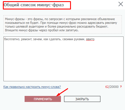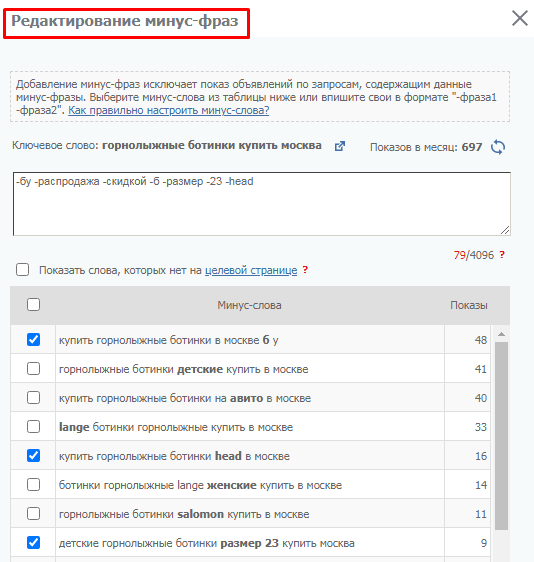 2. Отсеем нерелевантные фразы. Для этого зададим минус-слова:-в стране, -песня, -колонки, -сейчас, -здравствуй и т. д.