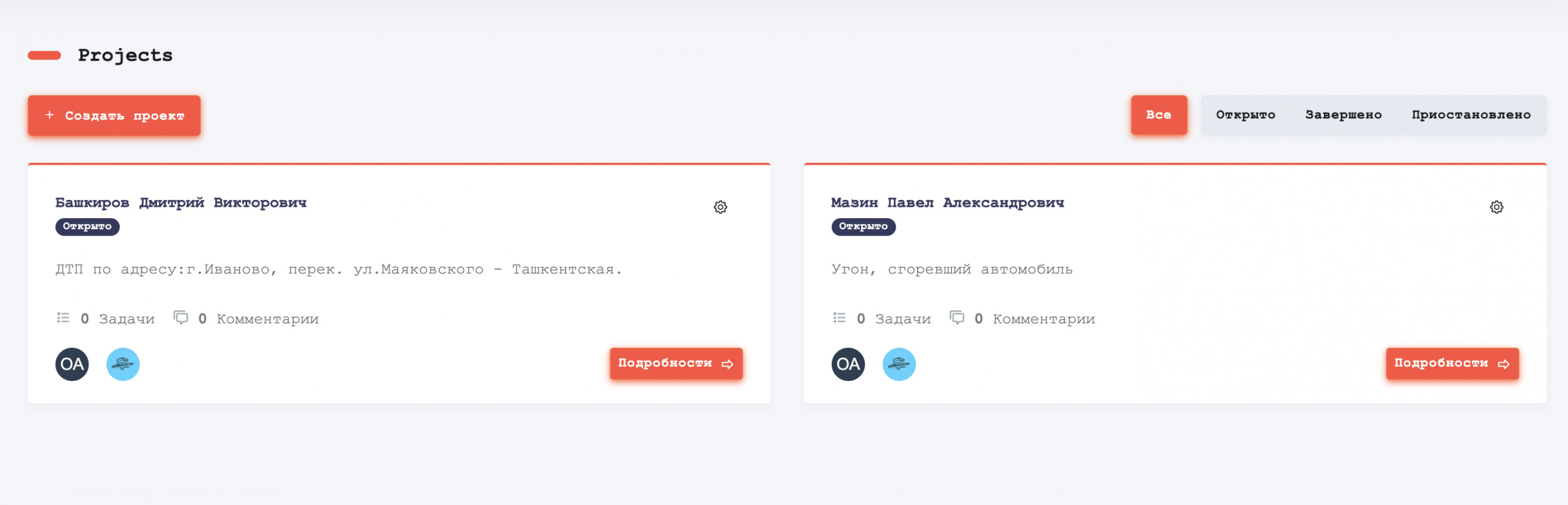 На данный момент самыми распространенными вариациями являются облачные CRM-системы, то есть те, для доступа к которым требуется интернет и которые размещены на стороннем сервере. По сравнению с системами, которые размещаются на компьютере сотрудника, они имеют несколько весомых преимуществ: Единственный недостаток облачных систем — это «издольщина» (sharecrooping) и безопасность, которая вытекает из первого. Если конкретизировать: арендуя систему чужого авторства, размещенную на чужом сервере, вы во-первых не можете гарантировать ее безопасность (так как не имеете исходного кода), во-вторых не можете влиять на произходящие в ней процессе. В прочем, сегодня, эта проблема касается любых сервисов: от Госуслуг до Instagram. Решение этой проблемы изящное: Web CRM (то, чем мы периодически занимаемся). Когда система находится на собственном или арендуемом сервере компании. Однако, в первом случае угроза исходит от собственных сотрудников, которых, конечно, возможно контролировать, а во втором случае от хостинг-провайдера. Правда, если выбирать надежного хостера и к безопасности сервера относится ответственно — риски можно свести к нулю. На данный момент, наиболее популярными на Российском рынке облачных CRM являются: Bitrix24, AmoCRM, Мегаплан, TerraSoft и другие, поменьше. Как правило, тарификация строится по 3 принципам: Насколько оправдана такая цена, сказать сложно, так как вопрос использования конкретной CRM — индивидуальный. Во-первых, для какого-то бизнеса заплатить 300 000 в год ради повышения эффективности — может быть абсолютно оправдано, особенно, если бизнес использует в своей работе другие продукты компании-разработчика. Во-вторых, частные предприниматели с небольшой выручкой могут использовать для продаж конкретное решение, которое совместимо с конкретной CRM и у них нет возможности оплачивать собственное или долгосрочное решение: они оплачивают тарифы помесячно в 2-3 SAAS-решениях (например, CRM + телефония + конструктор форм) и не платят больше 1000-1200 рублей в месяц. Что касается зарубежных решений, то англоговорящие и читающие сотрудники вполне комфортно работают с такими системами, как SalesForce, HubSpot и другими. Их стоимость варьируется от 12 до 300$ за пользователя в месяц и, как правило, предоставляет более интересный функционал, чем Российские продукты. Однако, такие системы не русифицированы и не имеют интеграции с популярными для Российского рынка продуктами, а значит большинству организаций подходят в меньшей степени. Ответим сразу: если представляется возможность, то отказаться от них. Если у вас развивающийся бизнес, в котором есть минимум 3 сотрудника и есть желание упорядочить работы для них, для будущих сотрудников и сэкономить в перспективе 3-6 месяцев — наш кейс может быть полезен и эффективен. Например, в работе своего предприятия (работа с клиентами, подрядами и собственными IT-платформами) мы используем 2 решения: собственную CRM, связанную с CMS (для обработки входящих заявок) и систему работы с проектами. Это экономит огромное количество средств, да и времени на разработку было потрачено немного. И тем не менее, в пример мы приведем процесс работы с одним их наших клиентов, которому потребовалась система, аналогов которой не было на рынке. Кто наш клиент: компания, занимается автотехнической и судебной экспертизой в городе Иваново. Задача: Комп