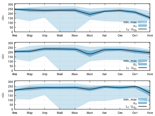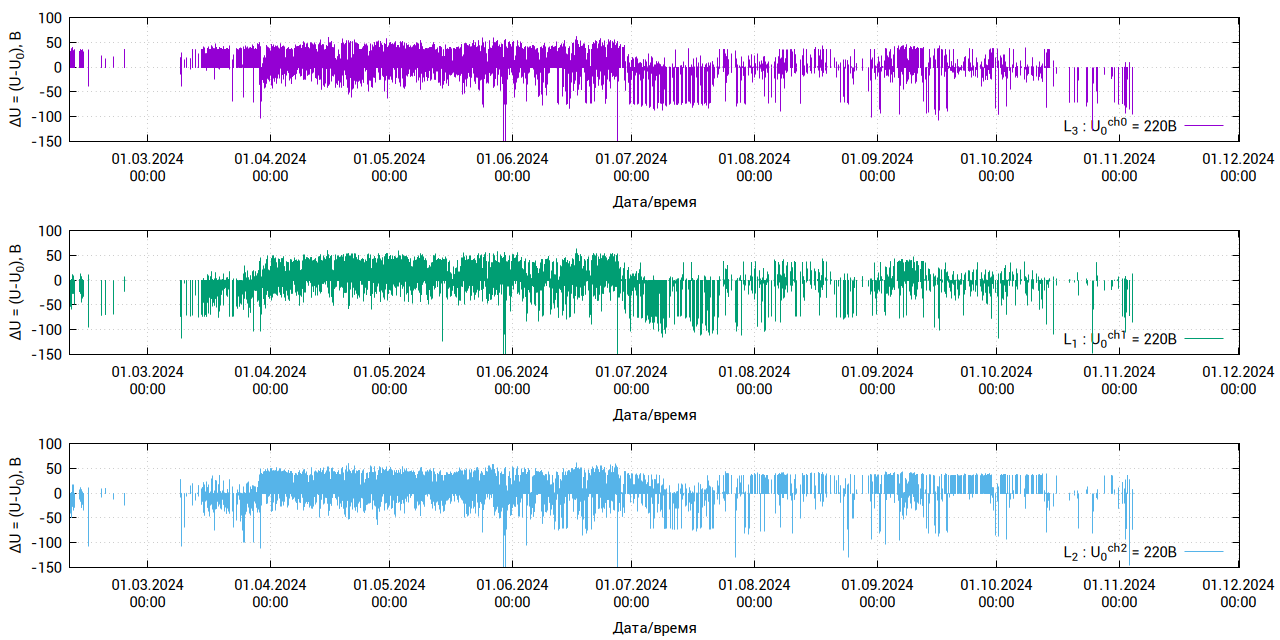 Большая часть графиков, приведённых ниже, получены по данным самописцев на восточной ветви, ТРП-250, ВЛ 10 кВ Синявская-2.