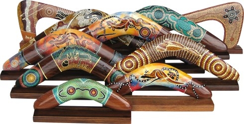 Бумеранг является одной из отличительных и уникальных эмблем Австралии. Нет не тот, который всегда возвращается, и который можно приобрести в спортивном магазине. Речь идет о приспособлении местных аборигенов для охоты. В сувенирных лавках и на рынках Австралии можно найти множество этнических бумерангов, раскрашенных точечной росписью в стиле местного аборигенского творчества. Такой сувенир может быть любого размера, от брелка до бумеранга на подставке, с разными рисунками. Если вы хотите порадовать своих друзей, то на местных рынках можно договориться о специальной цене за комплект. Они легкие и удобные для транспортировки. Цена тоже не «кусается»: начиная от 3 долларов за брелок, 5—7 долларов за маленький бумеранг и дороже.