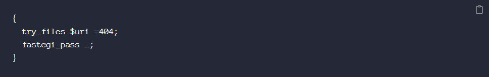 При типовой конфигурации для работы с PHP конфигурация выглядит так: Директива try_files выполняется слева направо, то есть при запросе сначала проверяется доступность файла из запроса — и, при его наличии, он будет отдан. Это базовый функционал веб-сервера, но таким образом можно извне прочитать различные файлы конфигурации в папке приложения, файлы версий Composer, .bak, .sql и т. д., о которых разработчик не задумывается. При использовании Composer, кроме доступа к файлам версий, при неверной конфигурации существует возможность запуска PHP-файлов зависимостей из папки «vendor» напрямую. Иногда зависимости содержат файлы примеров, скриптов или различных модулей, не задействованных в основном приложении, с помощью которых возможно исполнение кода или отображение произвольного текста, открывающее возможность для проведения CSRF-атак.Внимательно относитесь к файлам, которые становятся доступны публично, — храните приватные данные вне web-root, отключайте листинг директорий и явно ограничивайте доступ к чувствительным типам файлов через deny all или точные правила try_files. proxy_pass используется для перенаправления запросов с веб-сервера на другой сервер и указывает на путь или URL, на который проксируется запрос, полученный Nginx. Рассмотрим такую конфигурацию: Мы рекомендуем быть аккуратными с использованием переменных в proxy_pass, поскольку если на их содержимое может влиять злоумышленник (например, как в примере выше, когда содержимое $http_host и $request_uri берется из HTTP-запроса), это дает возможность организовать атаку типа SSRF — отправлять запросы внутренним сервисам. Грамотным решением может стать исключение использования непроверенных переменных в proxy_pass. Если есть возможность, вместо подстановки $http_host задавайте фиксированный целевой адрес или применяйте строгую валидацию и маппинг допустимых хостов. При лишних слешах можно вставить «..» — и получить доступ туда, куда разработчик приложения не предполагал предоставлять доступ. При такой конфигурации: Если мы выполним запрос: Сервер Nginx достаточно прямолинейно обработает запрос и добавит ‘../settings.py’ к значению директивы alias: Таким образом можно получить доступ за пределы ожидаемой разработчиком папки. Так же это работает и с другими директивами, такими как proxy_pass: Так можно выйти за пределы ожидаемого сегмента адреса (v1 в нашем случае). Например, если в качестве проксируемого сервера используется Apache, то данным запросом можно раскрыть его статусную страницу. Apache получит запрос: http://apiserver/v1/../server-status Старайтесь использовать root вместо alias, если структура приложения позволяет, и валидируйте пути на стороне проксируемого сервера. Когда Nginx передает запросы с помощью протокола FastCGI, каждое сообщение FastCGI содержит набор переменных среды. Поэтому настройка Nginx должна включать проверку, какие переменные среды передаются через директивы fastcgi_param, — чтобы избежать исполнения кода или раскрытия данных, не предусмотренных разработчиком. Например, безобидная конфигурация: Для URL, оканчивающихся на .php, Nginx не будет проверять существование файла и слепо передаст в переменной SCRIPT_FILENAME нормализованный путь из запроса. В зависимости от типа и версии вашего FastCGI-бэкенда, типа операционной системы, используемой локали, файловой системы, а также конфигурации самого Nginx, существуют различные способы манипуляций с адресом для испол