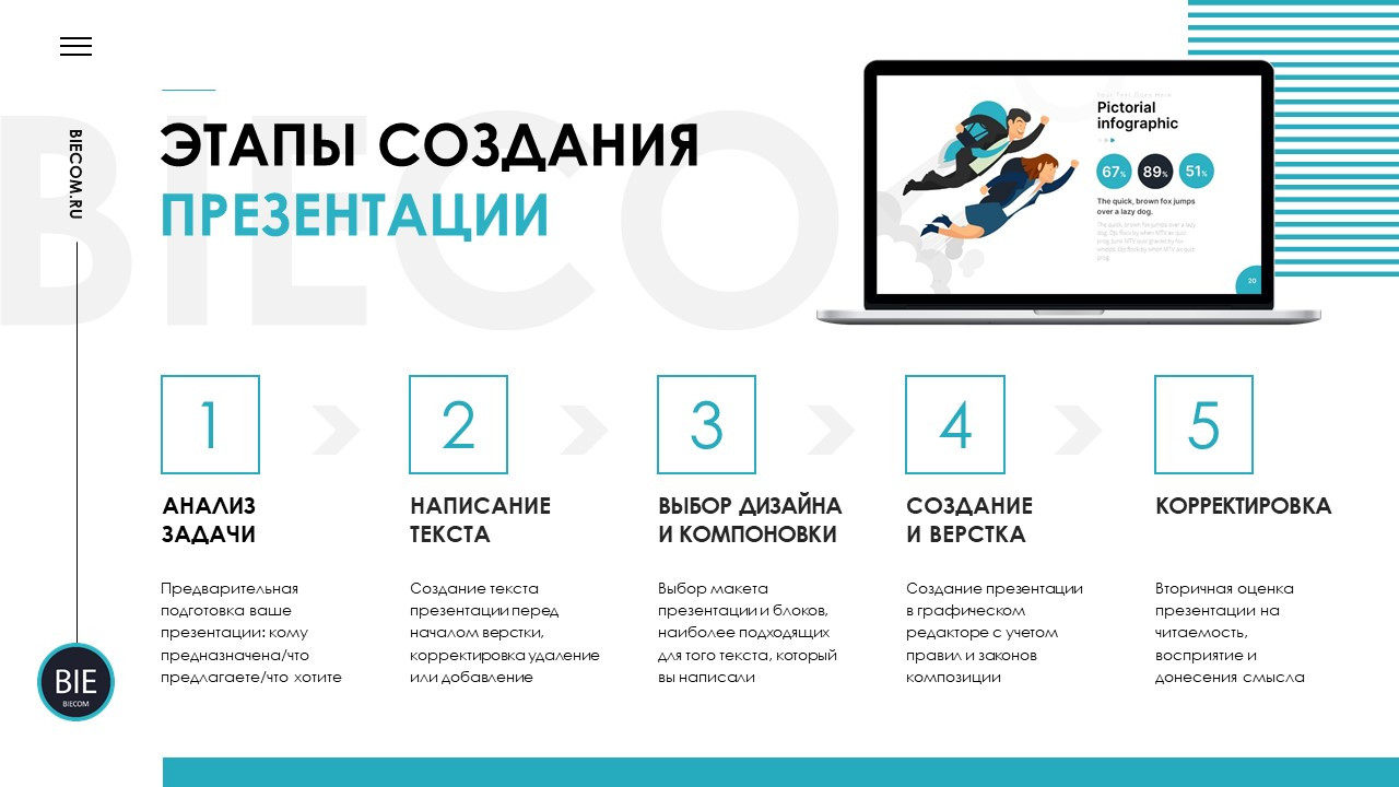 Всем привет! Мы — маркетинговое агентство Biecom. Более 10 лет наша команда создает презентации для бизнеса, для внутренних и внешних коммуникаций. Сегодня расскажем о главных заблуждениях, мешающих создать проект, который принесет результат.