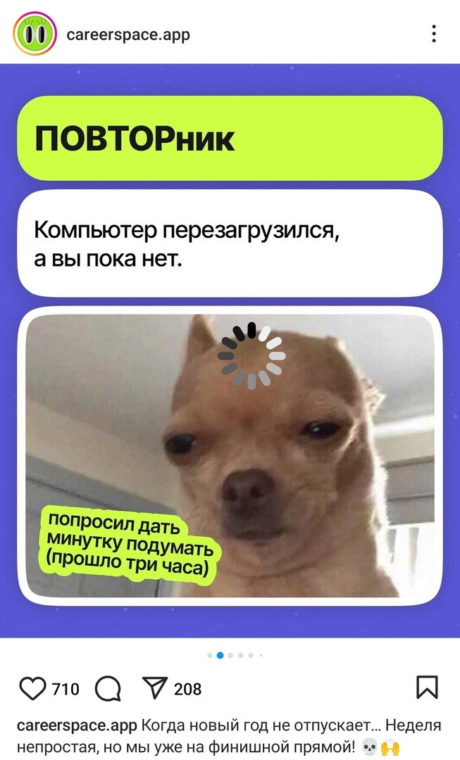 часто использует мемы для обучающего контента, дописывая под смешными