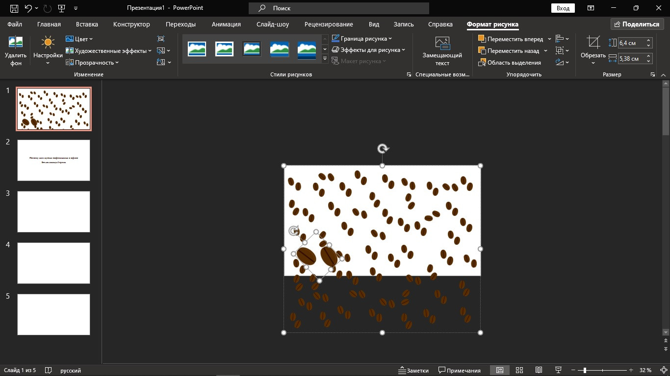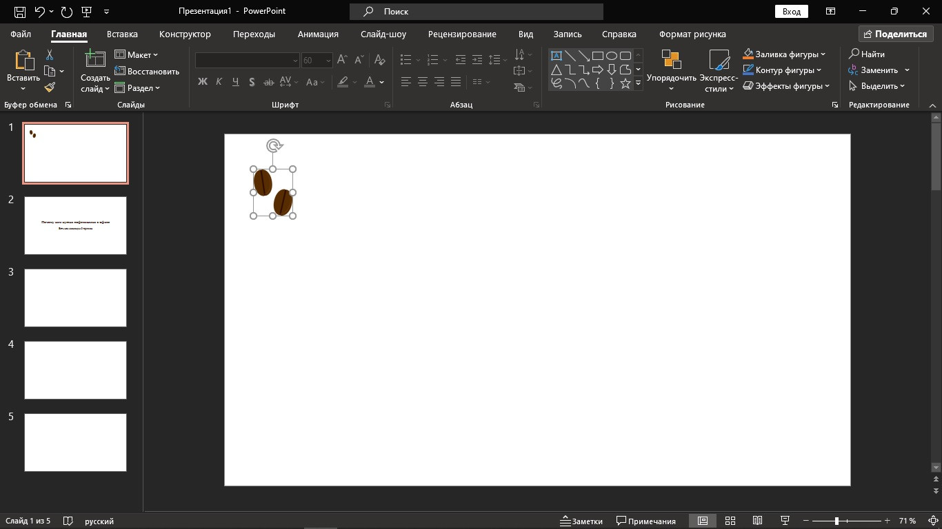 будут кофейные зерна, по тематике презентации. Картинка должна быть без фона, в