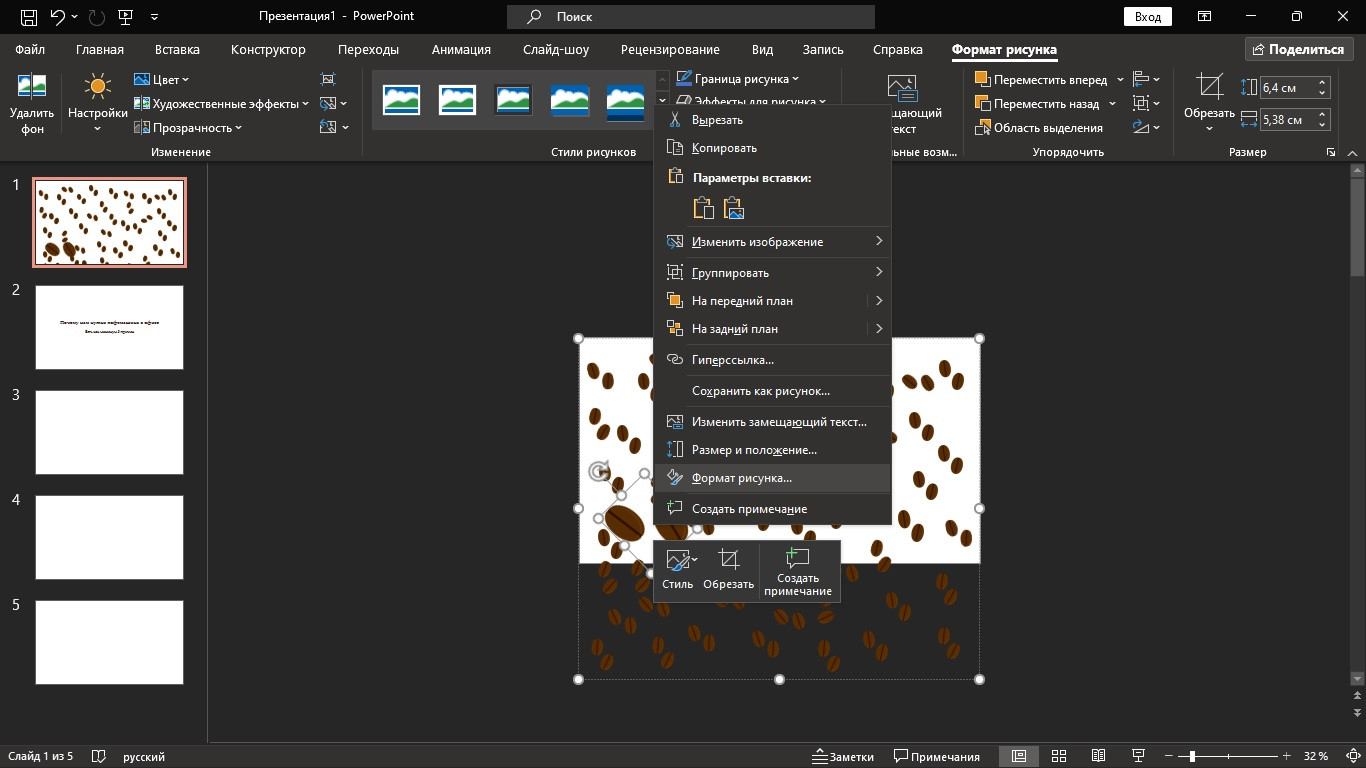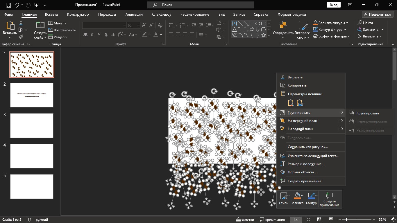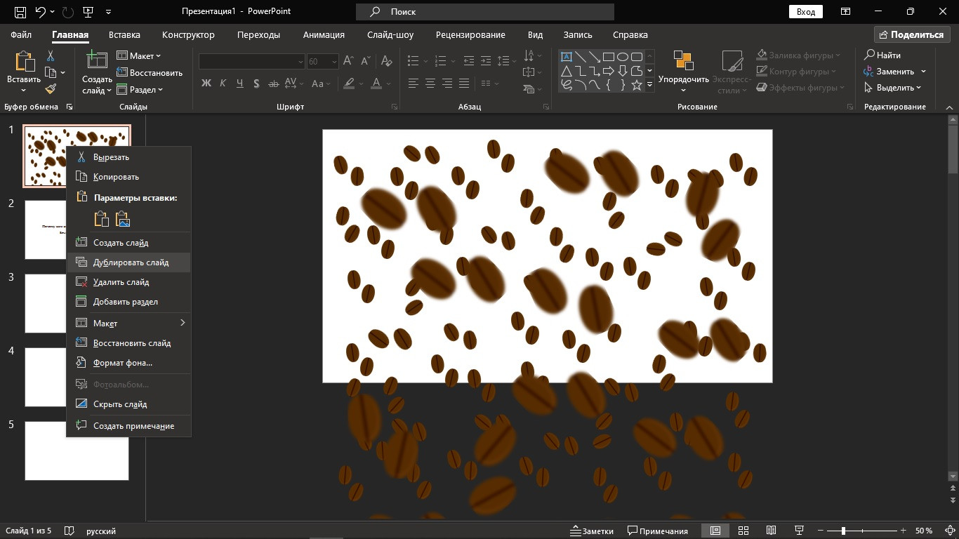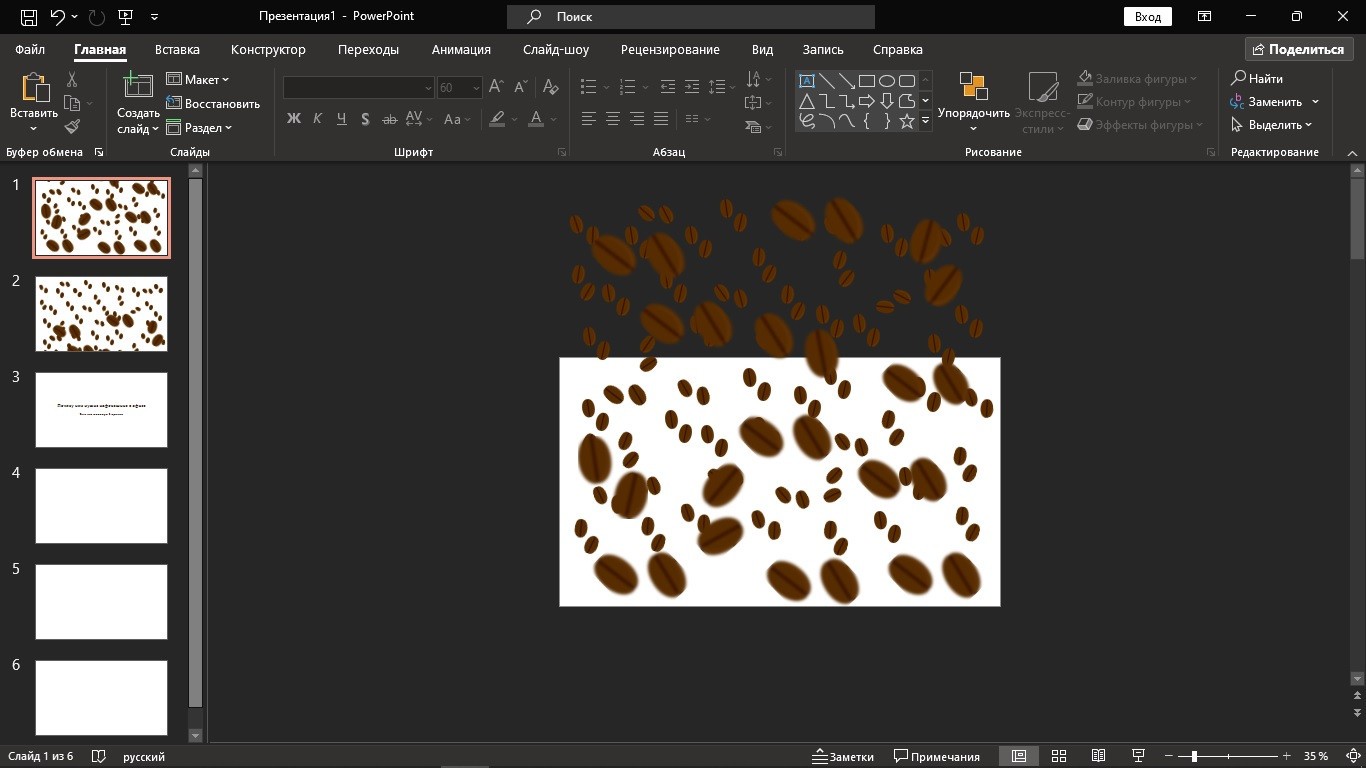 В качестве примера представим ситуацию, что ваша команда устала пить растворимый кофе и тратить немалую часть зарплаты на капучино из ближайшей кофейни. В связи с этим вы с коллегами решили убедить руководителя арендовать или приобрести кофемашину в офис. Чтобы разговор дал лучший результат, все аргументы «за» собрали в одну презентацию. Давайте добавим динамичный фон в ваш проект в PowerPoint.