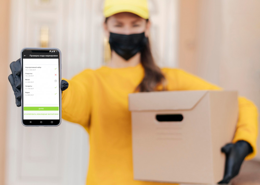 2. Коды маркировки для позиций заказа нужно будет или указать заранее в «Веб-офисе» перед распределением на сотрудника, или приложение «Курьер» позволит сотруднику закрыть заказ только после сканирования кодов маркировки, доставленных товаров (как это происходит в стационарной торговой точке).