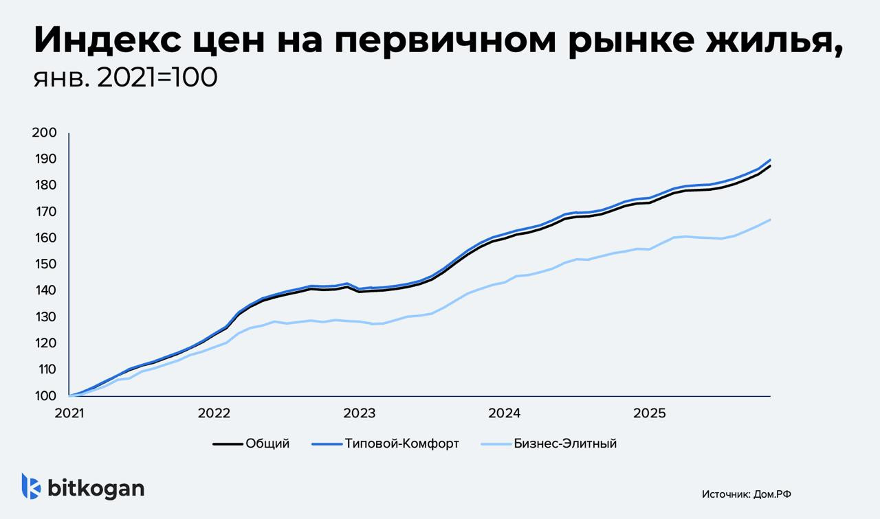 ◽️ По классам жилья: типовой комфорт-класс за месяц +1,82%, бизнес-класс +1,39%.