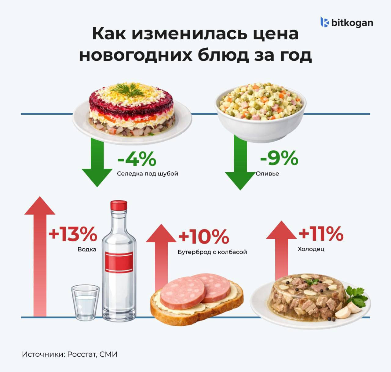 Оливье дешевеет, водка дорожает