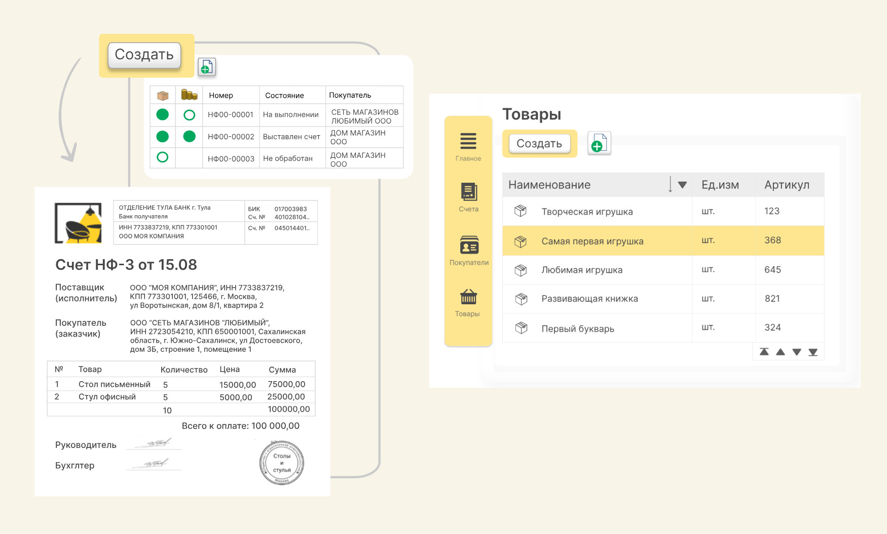 Также «Выставление счетов» легко интегрируется с другими продуктами 1С. Когда предприниматель решит расширять бизнес, не придется тратить время и ресурсы, чтобы «подружить» несколько сервисов.