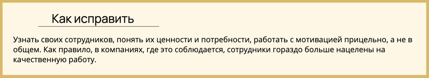 Безразличие к потребностям сотрудников приводит к высокой текучести кадров — люди прекрасно понимают, как к ним относятся. В такой ситуации нельзя выстроить клиентский сервис, производство контента, HR-бренд и репутацию в глазах партнеров.Разбираем ошибки в мотивации, которые до сих пор многие допускают