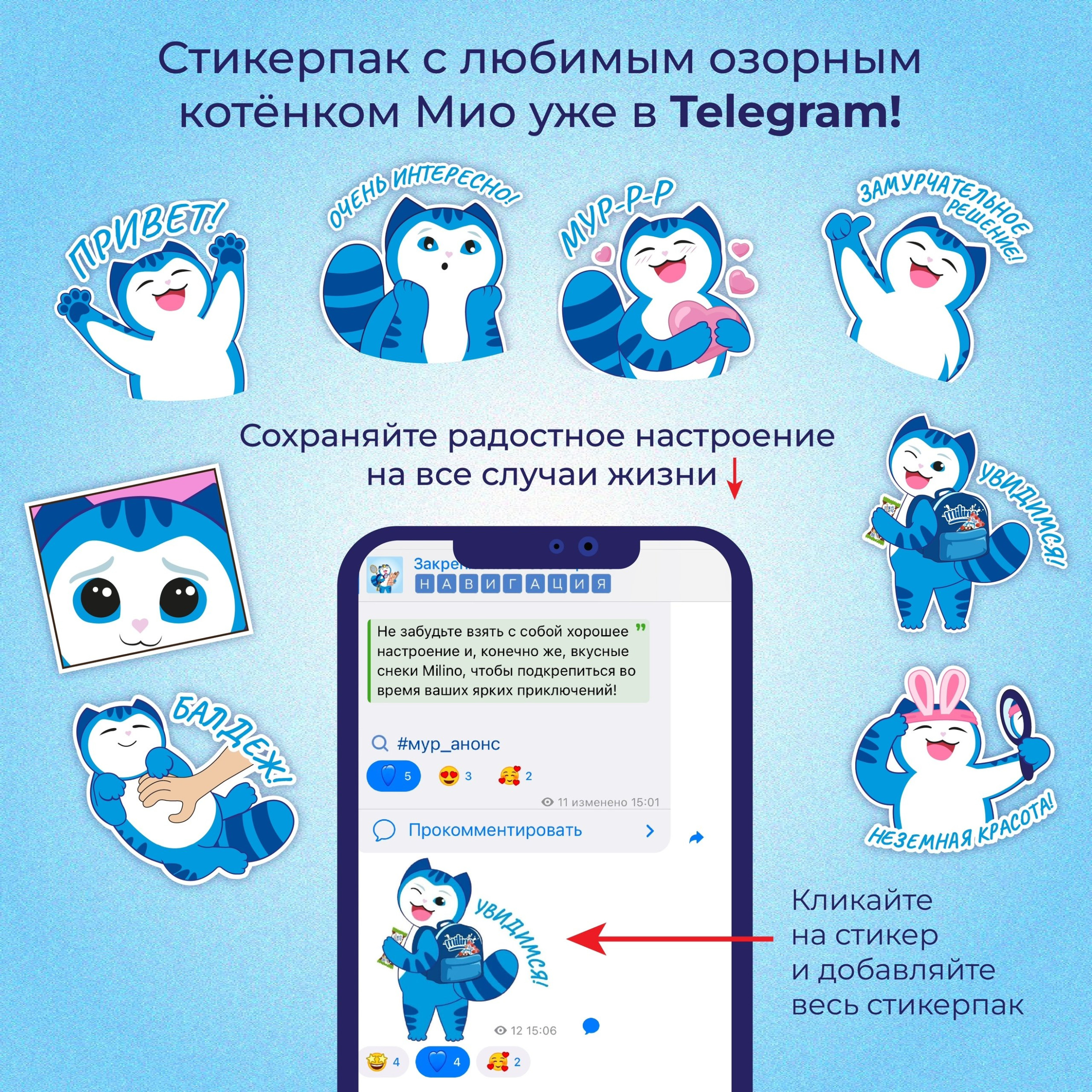 Так появился озорной котёнок Мио — герой, который живёт собственной жизнью, транслирует ценности бренда и ведёт общение с аудиторией в формате «друг-другу», а не «бренд-потребителю». Он обожает снеки Milino, а значит, советует их друзьям. Именно этот посыл стал ключевым — Мио всегда делится тем, что радует его и сможет порадовать аудиторию, схожую с ним по ценностям.