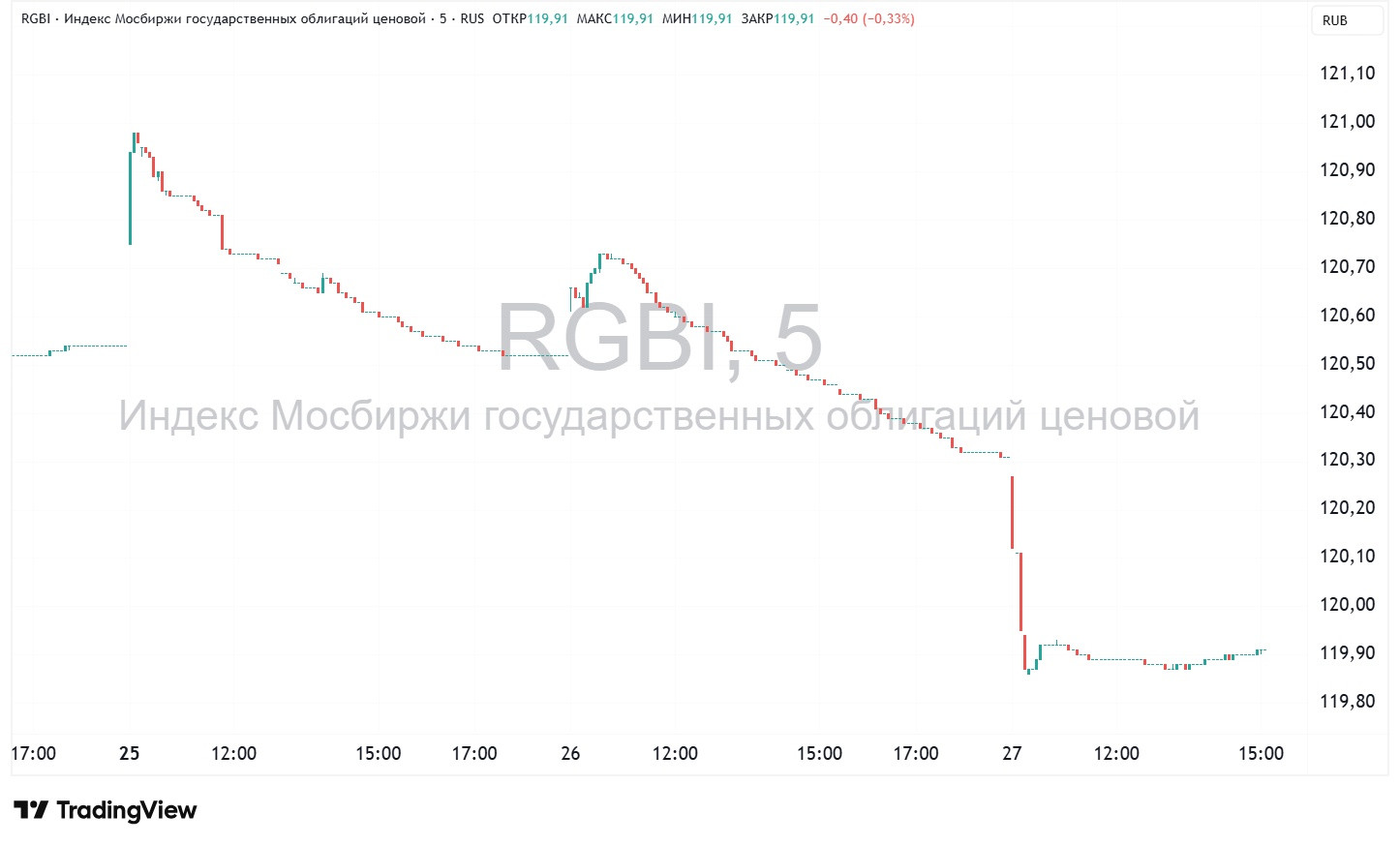 Индекс гособлигаций RGBI снижается несколько дней подряд, несмотря на отскоки в акциях