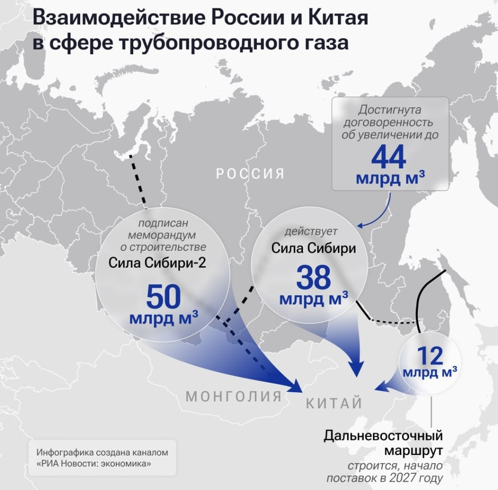 Подписан меморандум о строительстве «Силы Сибири 2» и транзитного газопровода через Монголию «Союз-Восток», 50 млрд кубов в год в течение 30 лет.