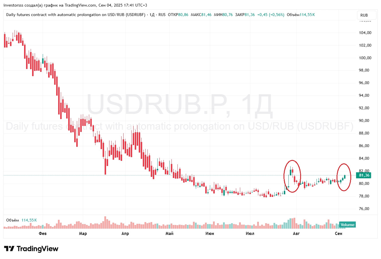 Тренд на девальвацию пока не выглядит как сформировавшийся, но фундаментально факторы в пользу укрепления рубля с каждым днём теряют актуальность. Ключевая ставка вошла в цикл снижения, а это значит, что рублёвые инструменты будут постепенно терять свою притягательную силу.