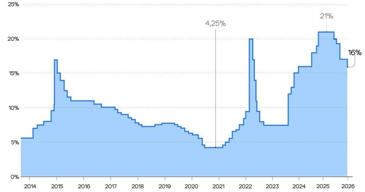 - ЦБ снизил ключ на 50 бп до 16%, допустил паузы в снижении в 2026 году и признался, что на столе был и вариант с сохранением ставки.