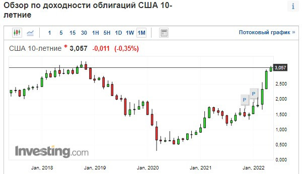 Успокаивающих речей Пауэлла хватило на 1 день. Очевидно, инвесторы осознали, что ФРС будет делать все для борьбы с инфляцией, а именно ужесточать ДКП. Фьючерс на ставку ФРС показывает 80% вероятности, что в июне она будет повышена на 0.75 п.п., несмотря на обещание Пауэлла поднять её на 0.5 п.п.