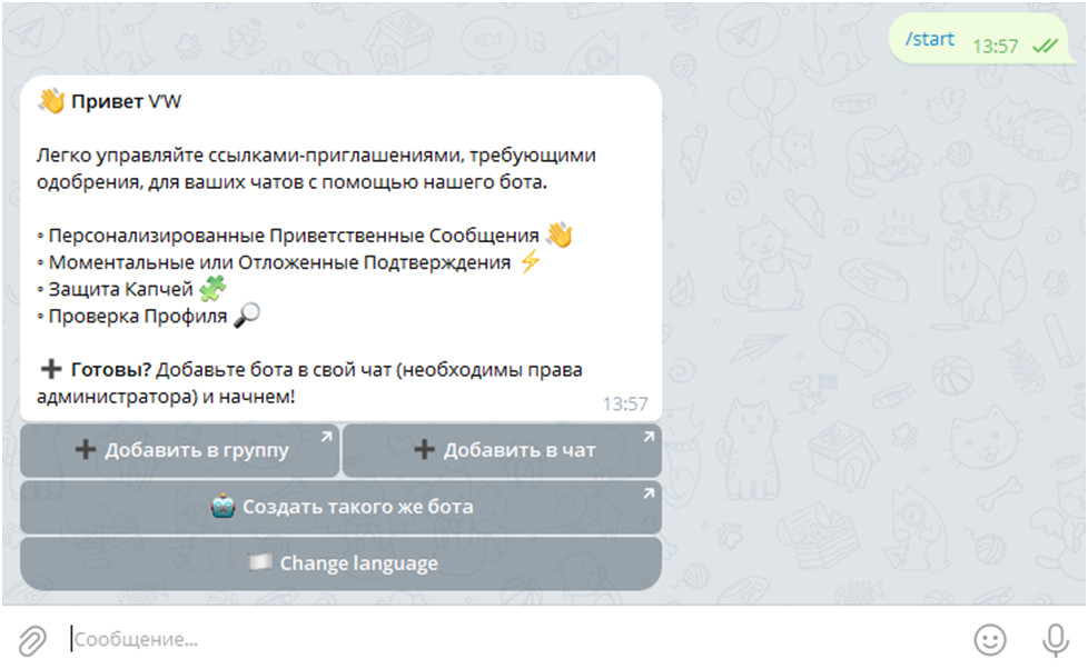 - Доступ открывается мгновенно, приветствие улетает в личку, а вы видите статистику по вступлениям