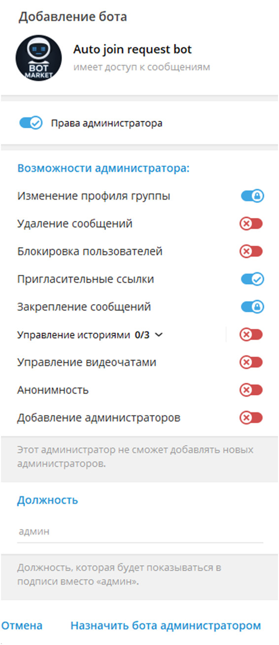- Соблюдаете условия доступа, например, для одобрения подписки на канал — клиентом должны быть соблюдены условия для вступления, например: обязательная подписка на каналы Ваших партнеров.
