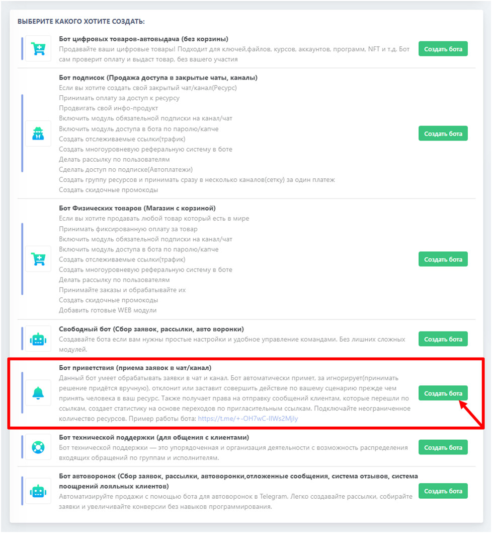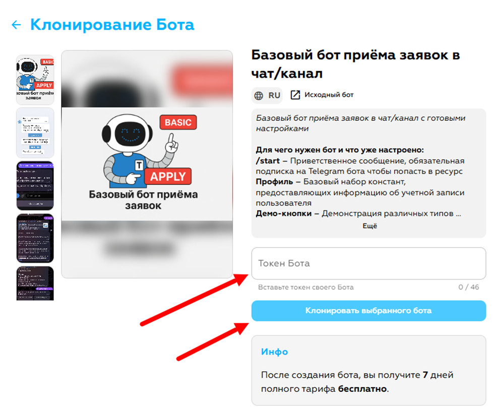 доступны и базовые, и продвинутые шаблоны: Конструктор BOT-MARKET