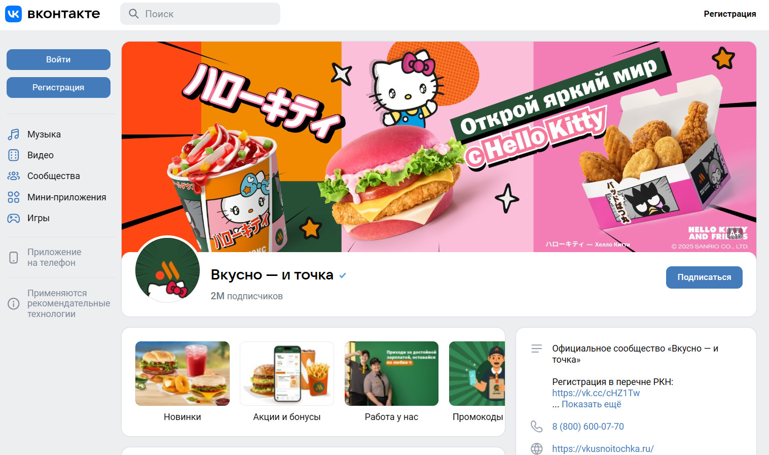 - Плюсы — высокая вовлеченность, быстрая обратная связь, возможность проведения акций; минусы — сложно обеспечить органический охват.