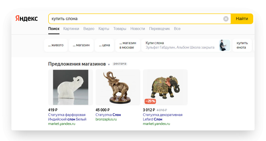 Например, кафе — локальный формат бизнеса на ограниченную аудиторию с оффлайн-форматом предоставления услуг, магазин компьютерной техники — товары с доставкой и без в рамках города или на всю страну. Если первому подойдет реклама на Яндекс Картах, то второй сделает ставку на товарные предложения на поиске и в соцсетях.