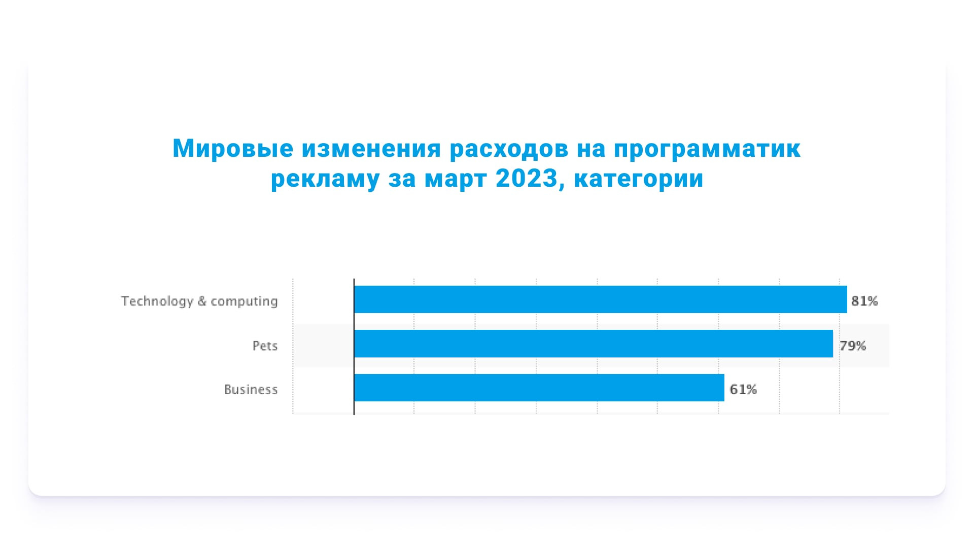 К примеру, согласно данным statista, мировые расходы на программатик рекламу в сфере цифровых технологий выросли. Разница существенная — 81% относительно январских значений 2023 года.