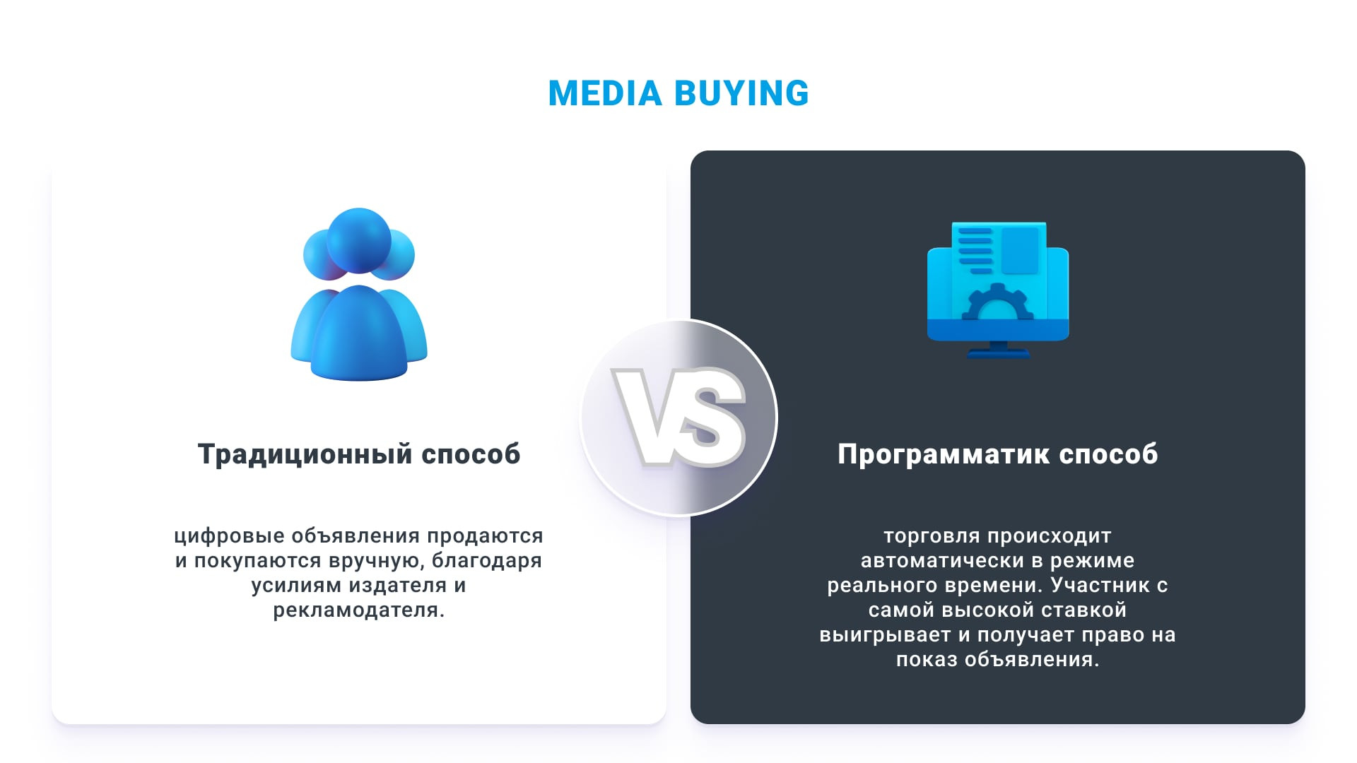 Закупка рекламы через программатик также является частью медиа баинга. При этом процесс имеет немало отличий от традиционного способа.