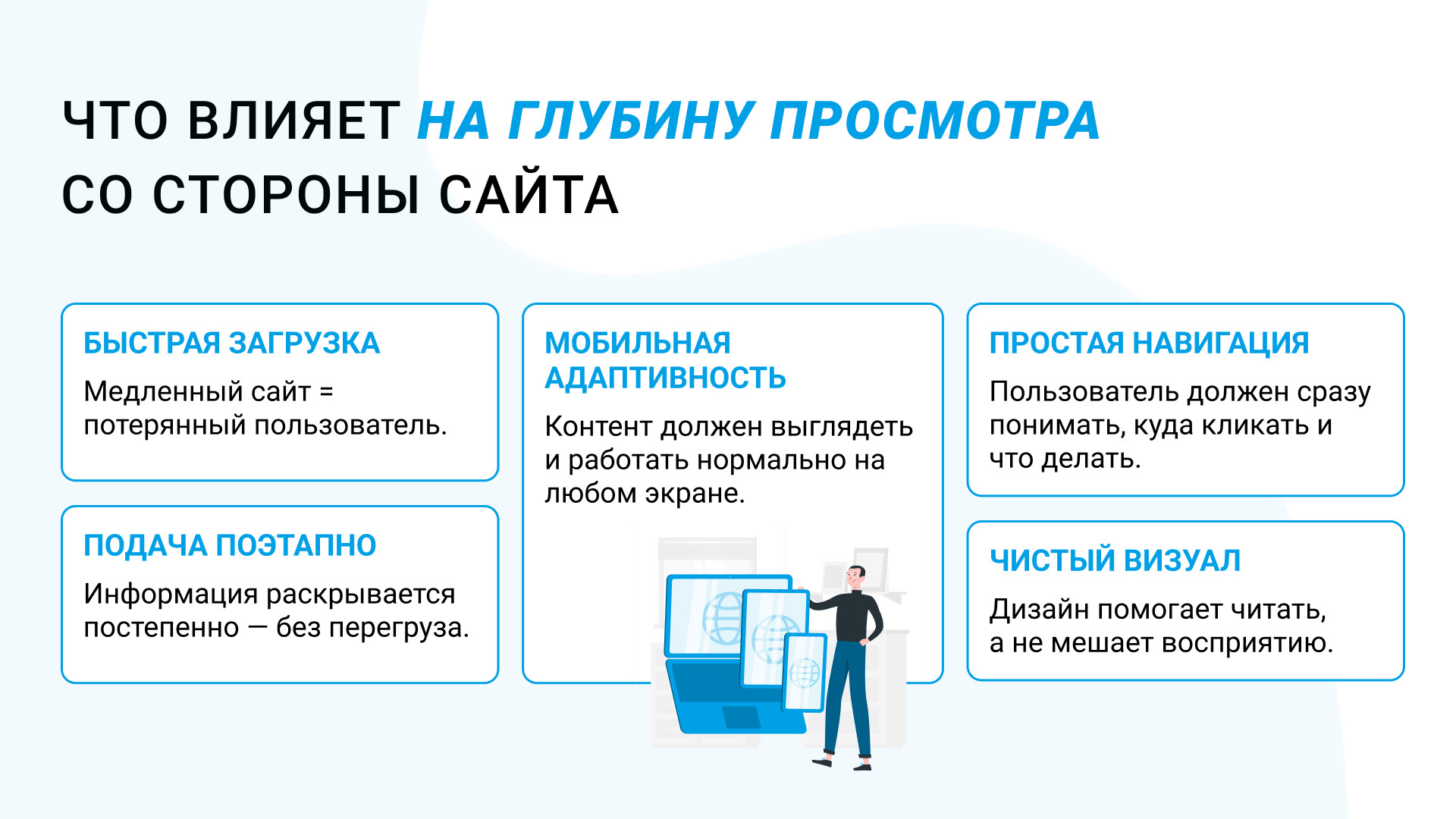 Низкая глубина — сигнал, что нужно работать над структурой, дизайном или скоростью загрузки.